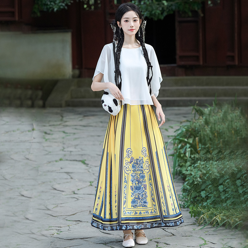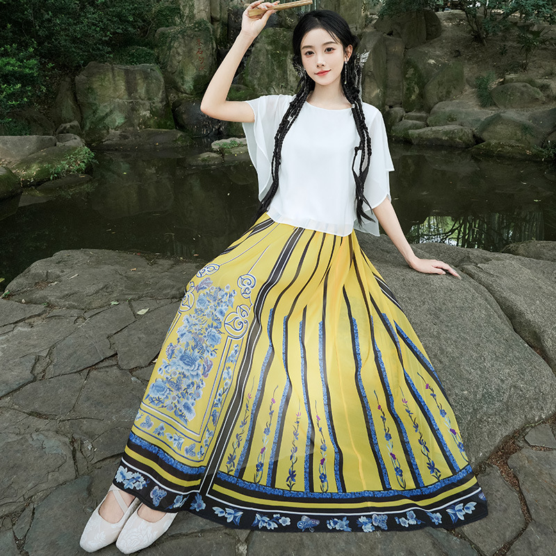 | nameOriginal | 2024 Summer New Artistic Retro New Chinese Round Neck Batwing Sleeve Top Printed Skirt National Style suit |