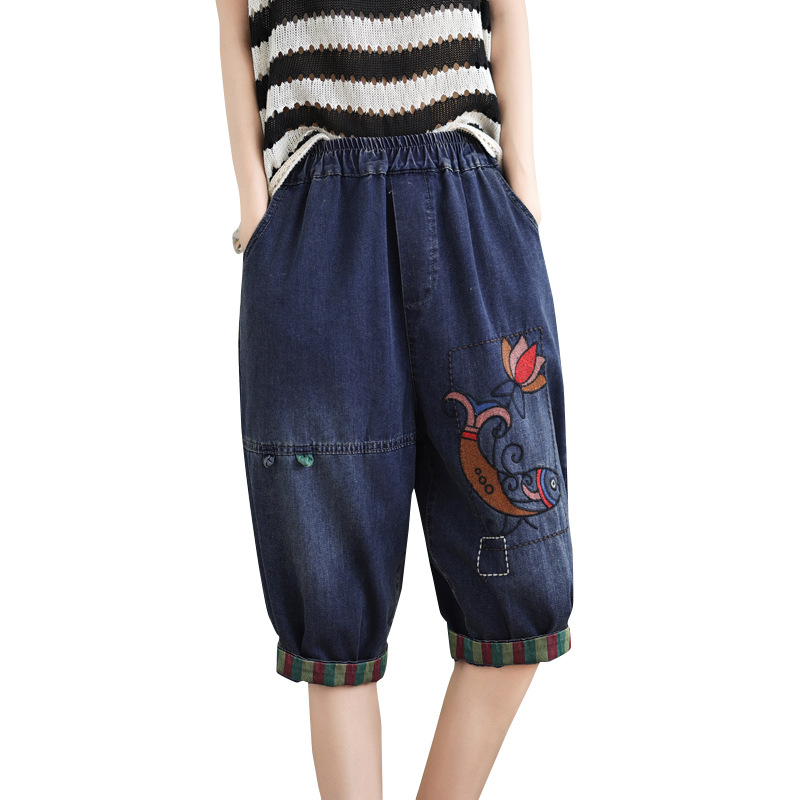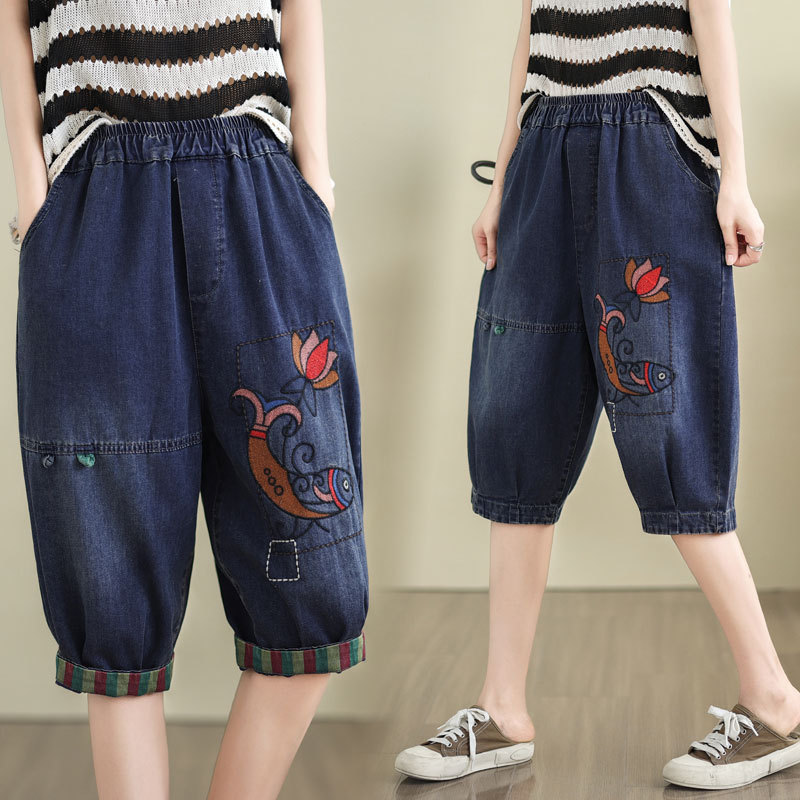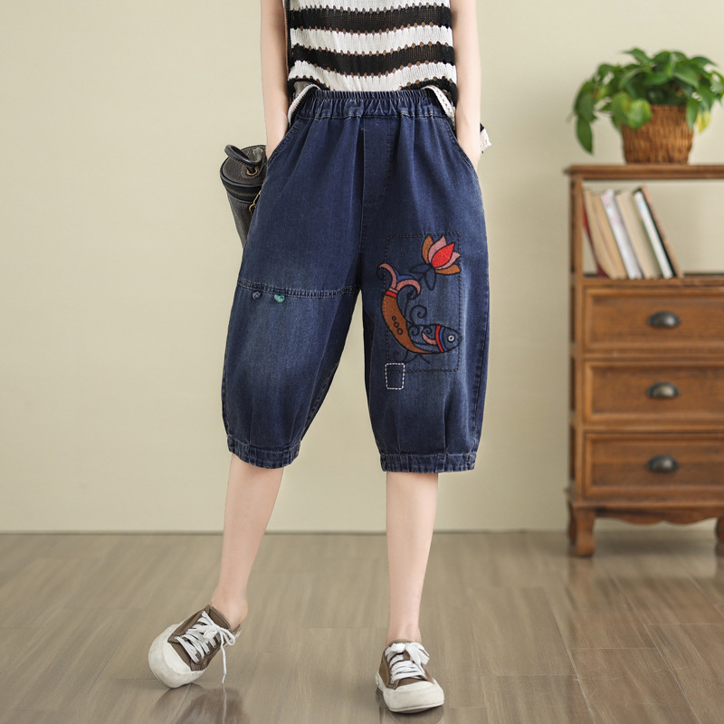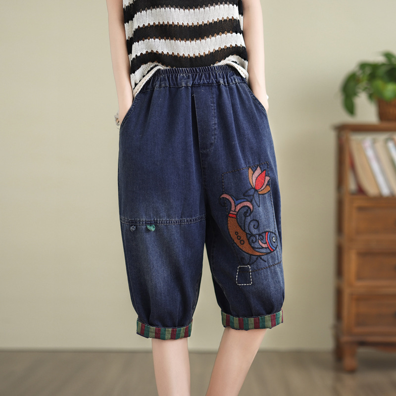 | nameOriginal | 2024 Summer New Artistic Vintage Embroidered Denim Pants Loose Slimming Leg Thin Stressed Waist Pants |