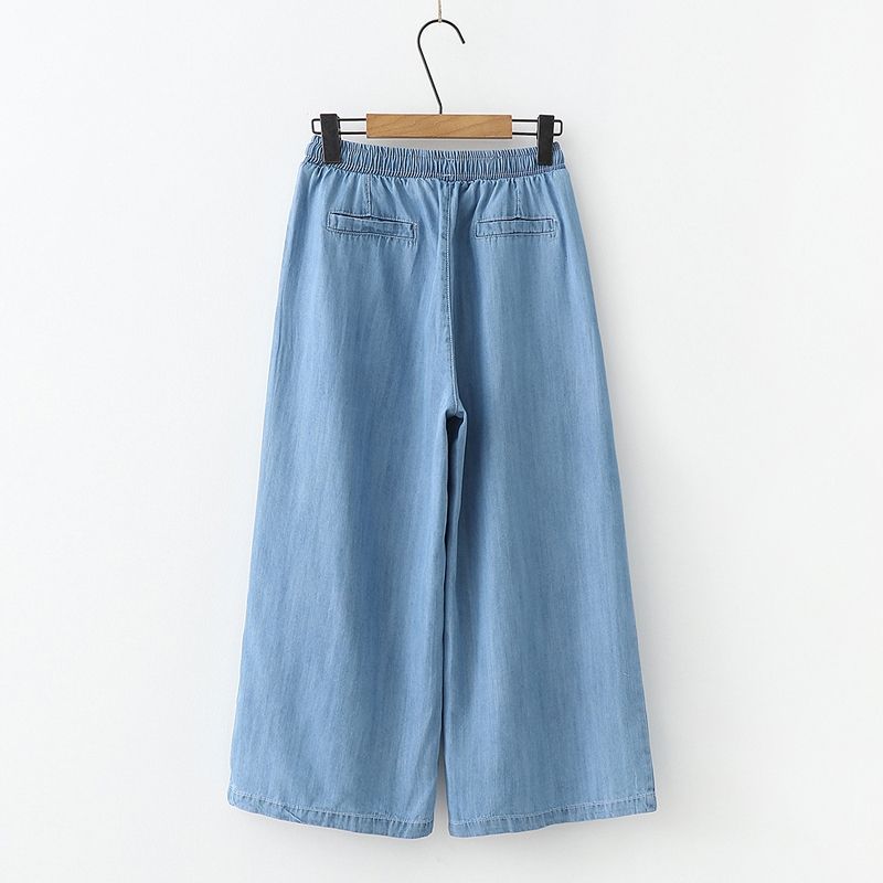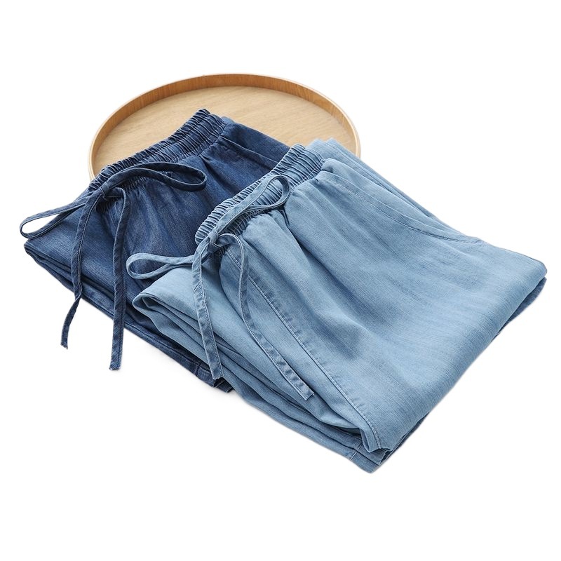 | nameOriginal | 2024 summer new bamboo pattern straight pants capri pants Tencel Denim drawstring wide leg pants women's thin |