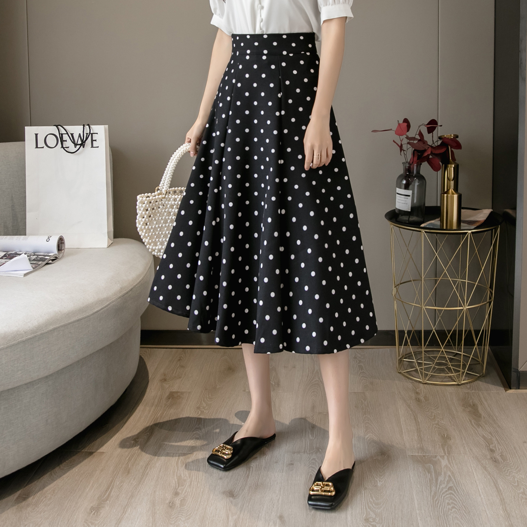 | nameOriginal | 2024 summer new black elastic waist high waist polka dot mid-length skirt A- line skirt polka dot skirt women |