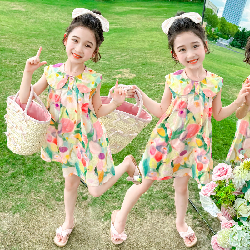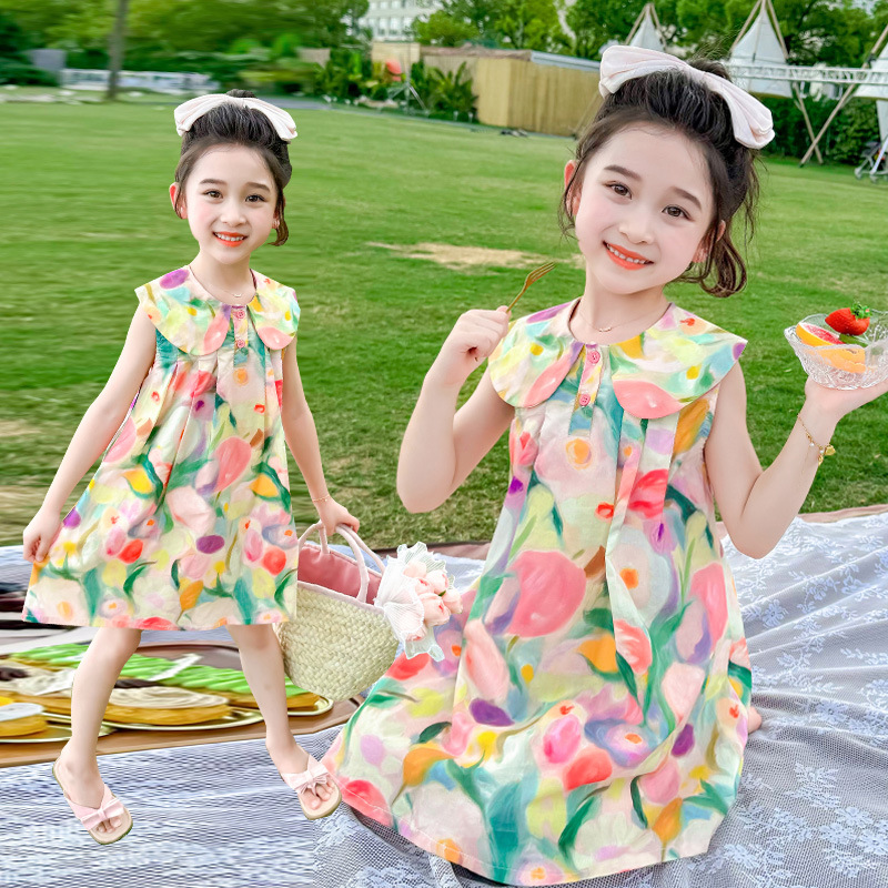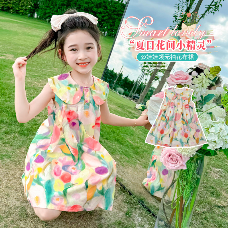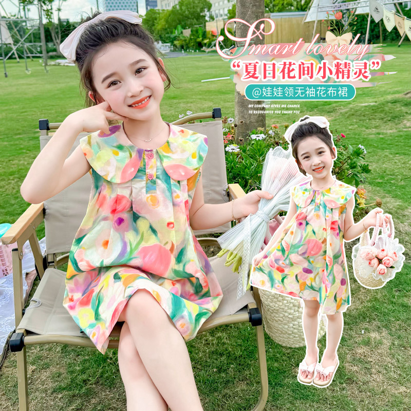 | nameOriginal | 2024 Summer New Children's Wear Girls Doll Collar Floral Sleepless Skirt Korean Style Floral Cloth dress |