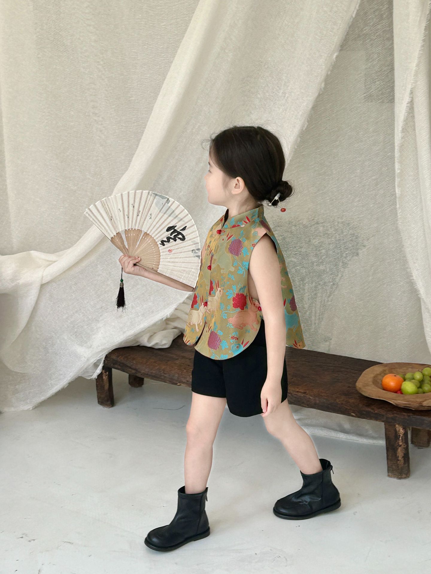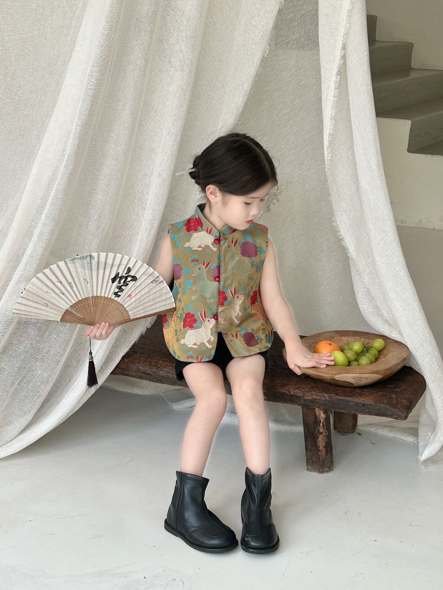 | nameOriginal | 2024 Summer New Children's Wear Girls' New Chinese Jade Rabbit Vest with Vertical Collar Handmade Buckle Vest National Style Vest |