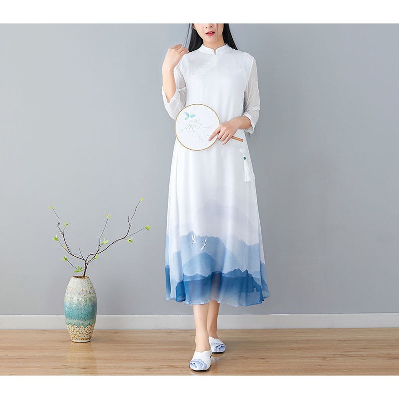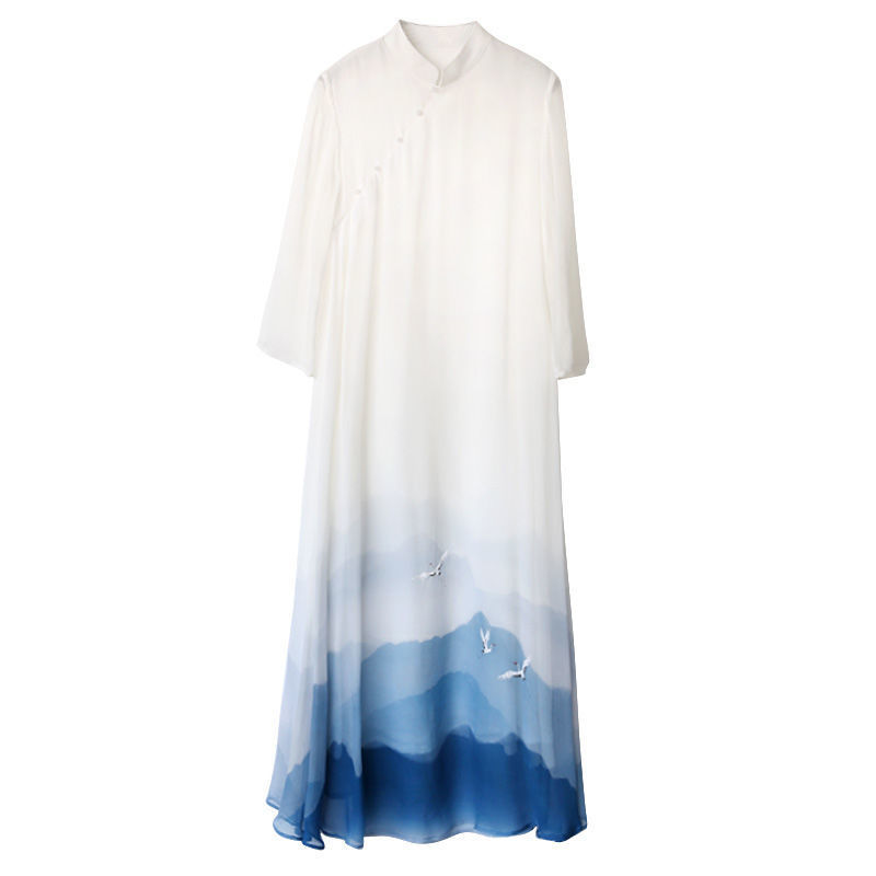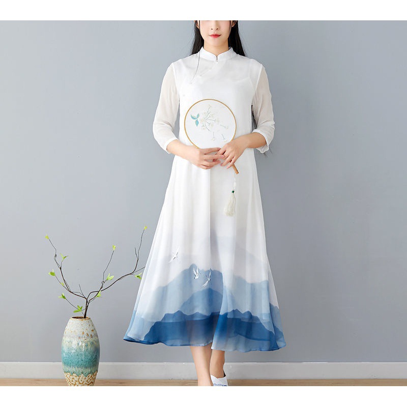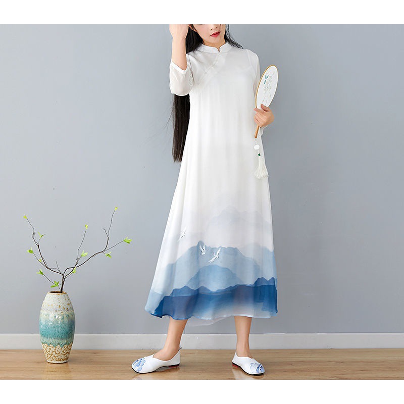 2024 Summer New Chinese Style Retro Women’s Landscape Painting Printing New Hanfu Improved Cheongsam dress
