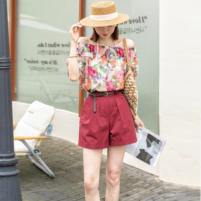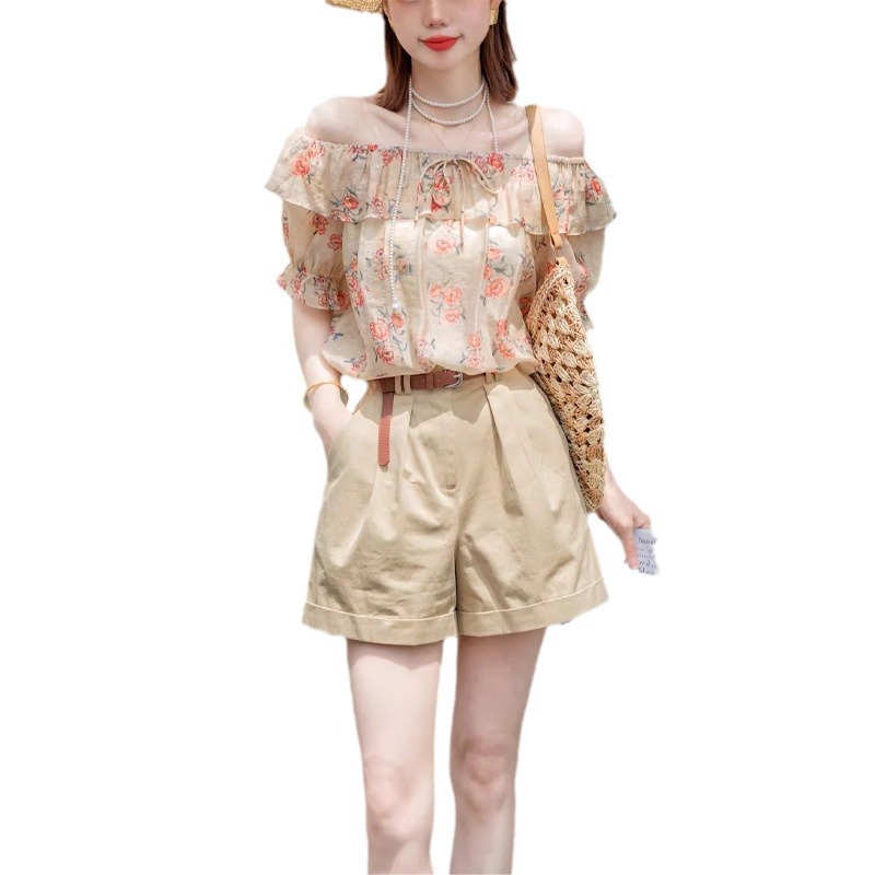 | nameOriginal | 2024 Summer New Color One-character Collar Two-piece Set Women's Internet Celebrant Popular Puff Sleeve Shirt Western Style suit Trendy |