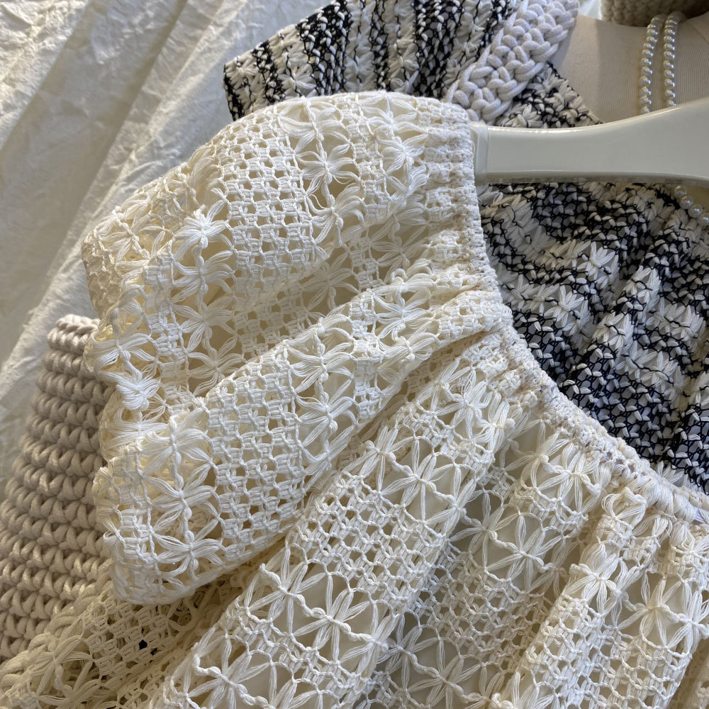 | nameOriginal | 2024 Summer New Crochet Hollow Short-sleeved Shirt Women's Puff-sleeved Pullover Short Top Trendy |