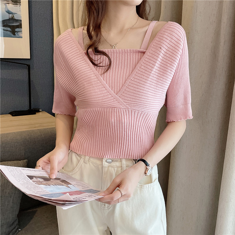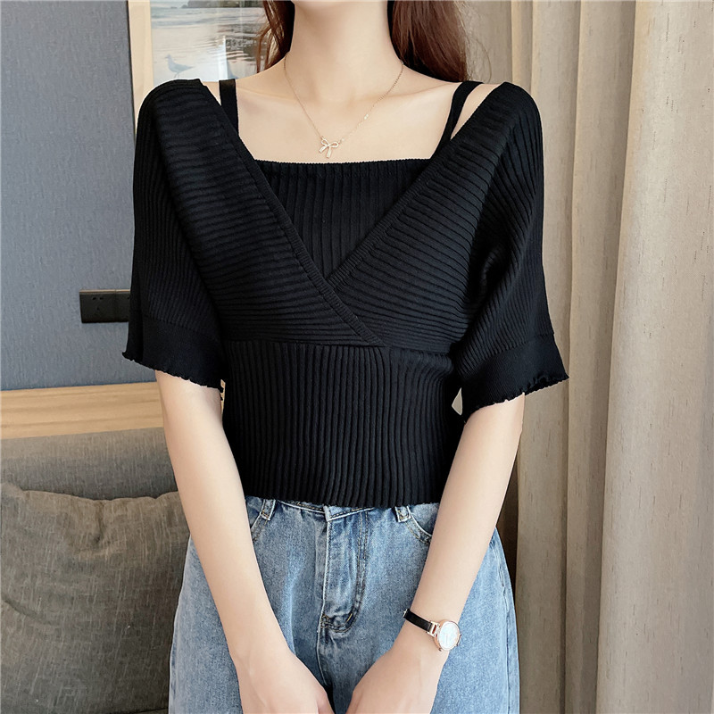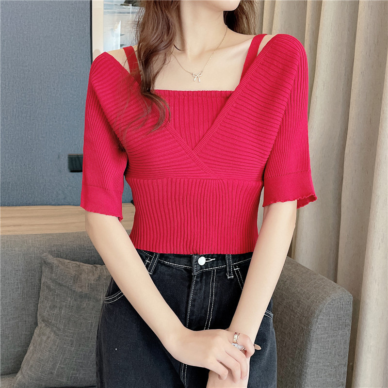 | nameOriginal | 2024 summer new design sense fake two-piece waist short-sleeved sweater top women |