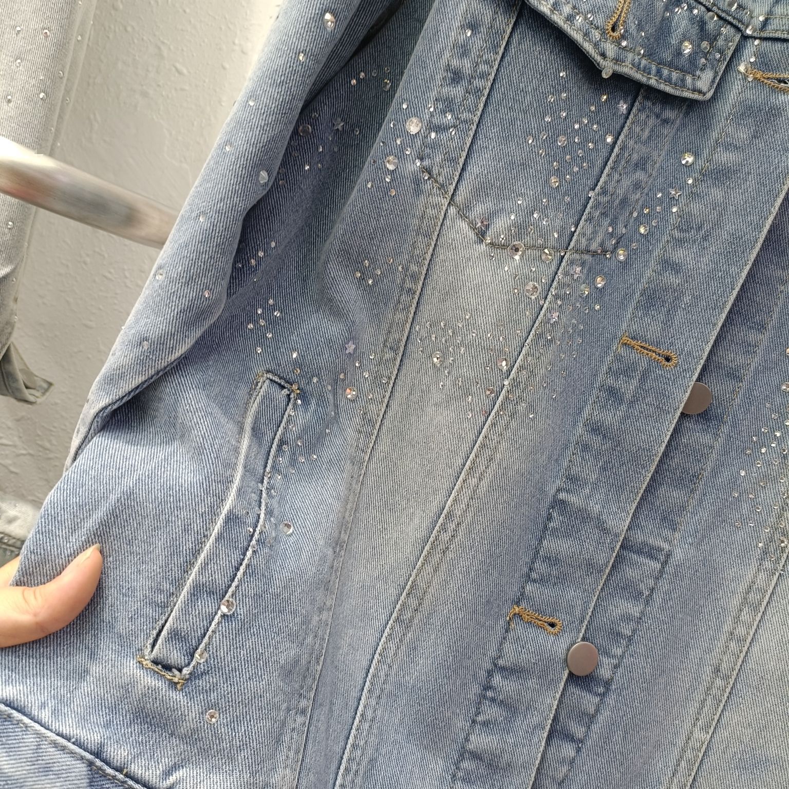 | nameOriginal | 2024 Summer New Design Sense Heavy Industry Hot Drilling Denim Jacket Women's Lapel Loose Korean Style All-match Jacket Top |