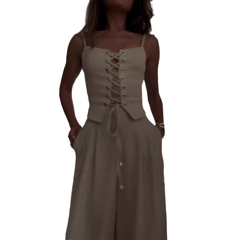 | nameOriginal | 2024 Summer New European and American Amazon Cross-border Pure Sexy Hollow Strap Top Casual Wide Leg Pants suit |