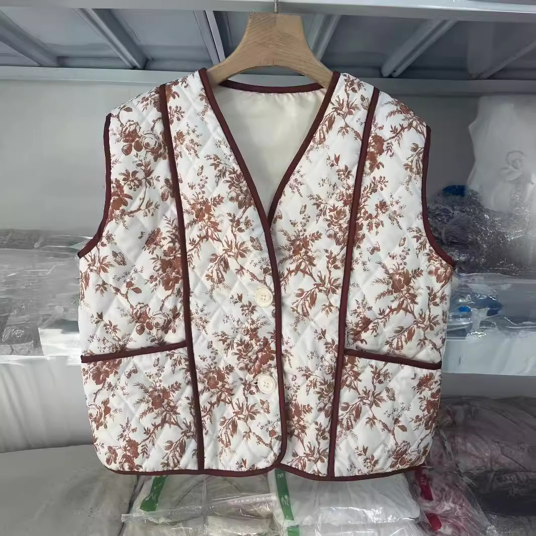 | nameOriginal | 2024 summer new European and American cross-border women's street fashion printed cotton-padded jacket vest w034 24090 |