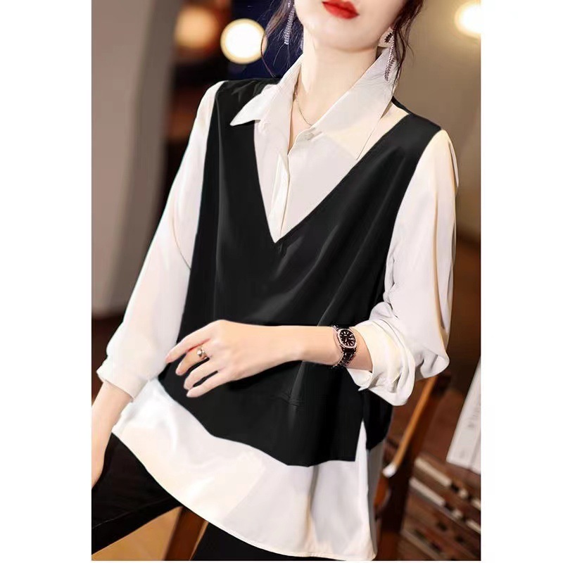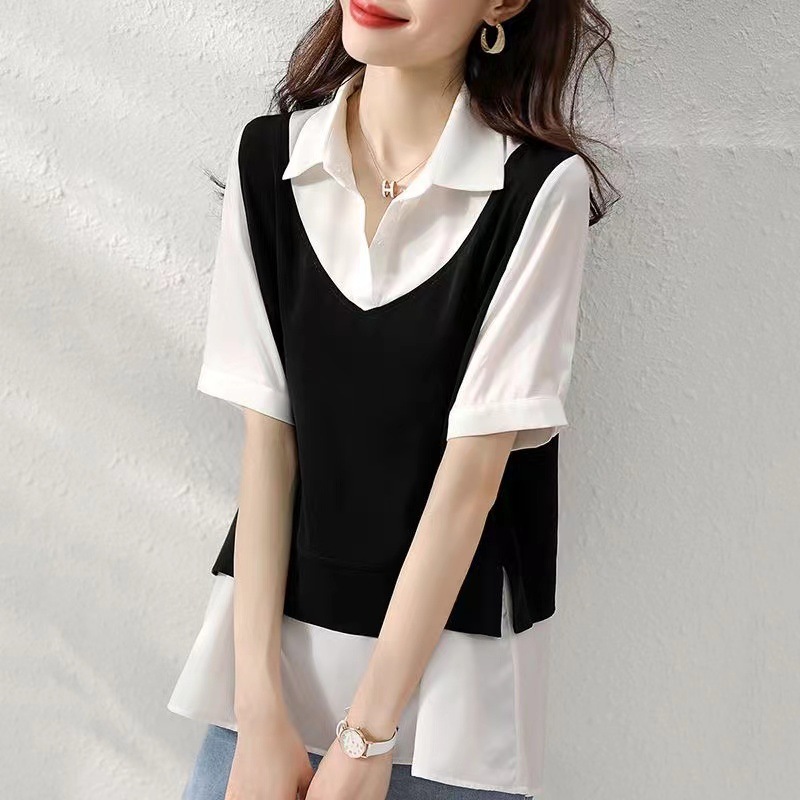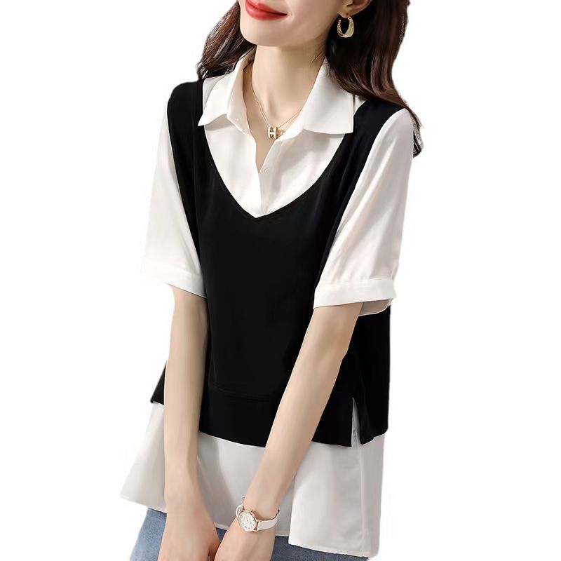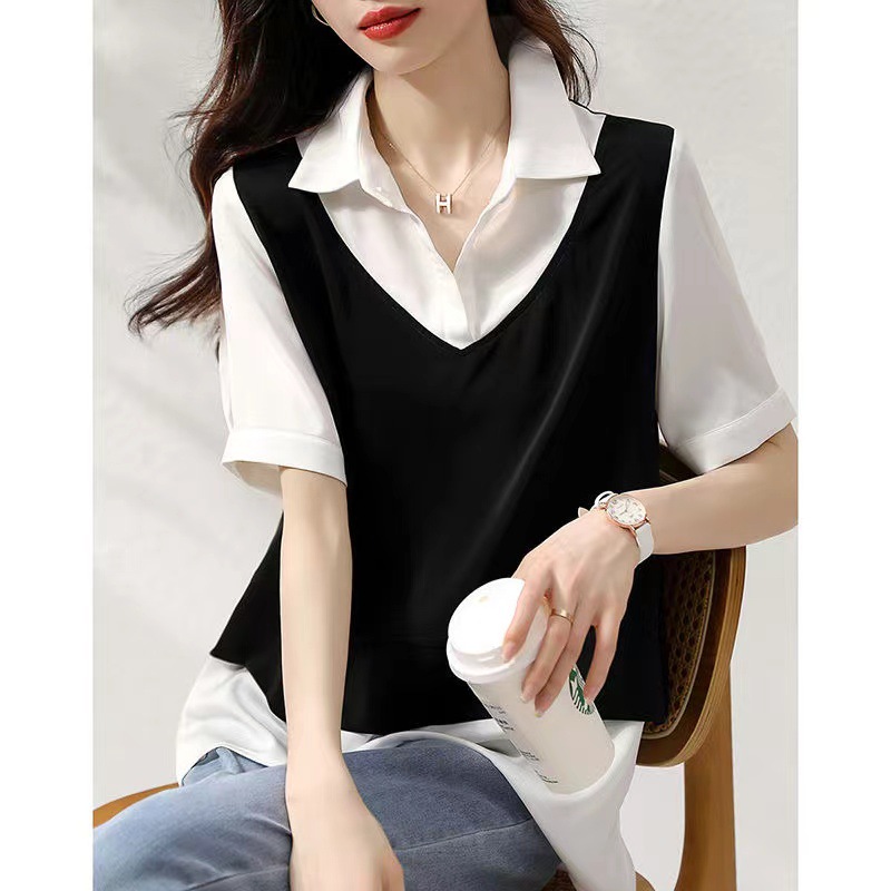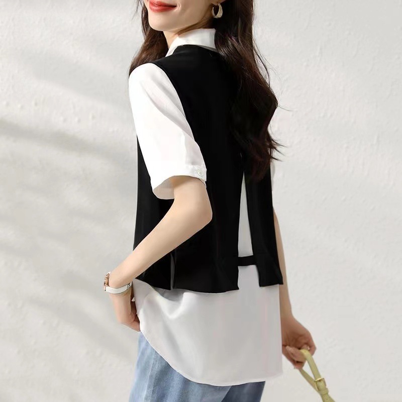 | nameOriginal | 2024 Summer New Fake Two-piece Shirt Women's Spring Wear Belly-covering Slimming Western Style Top Niche Beautiful Chiffon Top |