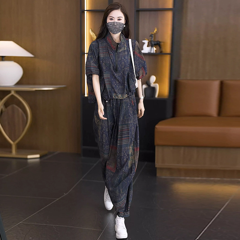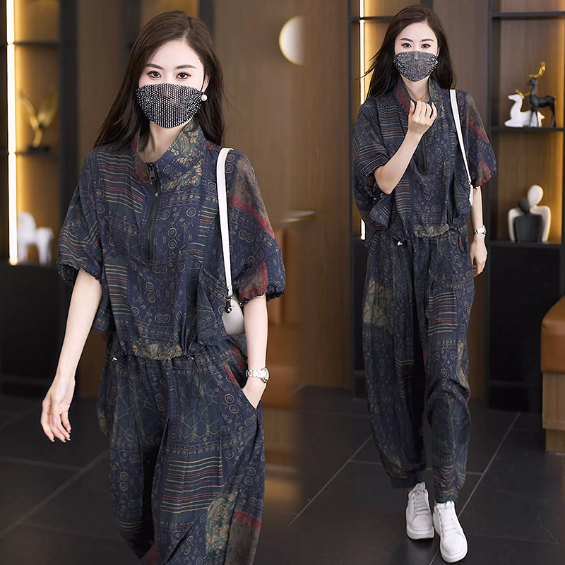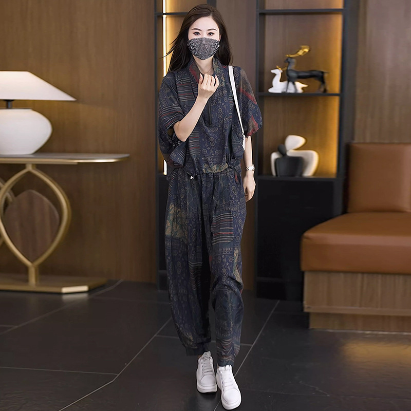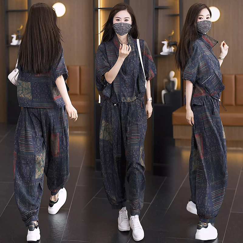 | nameOriginal | 2024 summer new fashion slim short sleeve bat shirt top all-match Harlan pants two-piece elegant women's clothing |