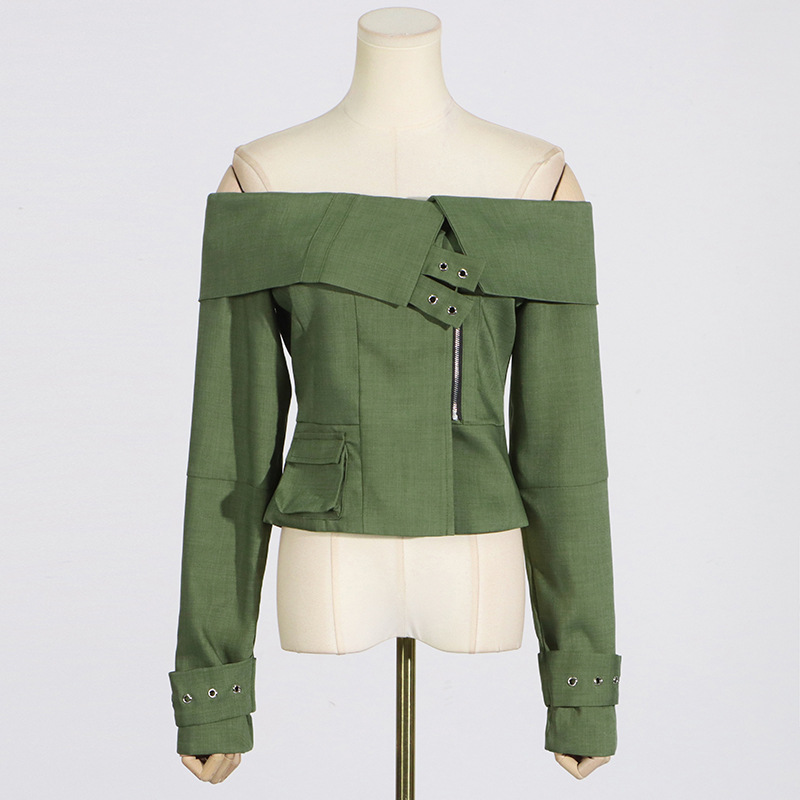 2024 summer new fashion temperament off-shoulder irregular zipper design sense slim long sleeve short women’s jacket