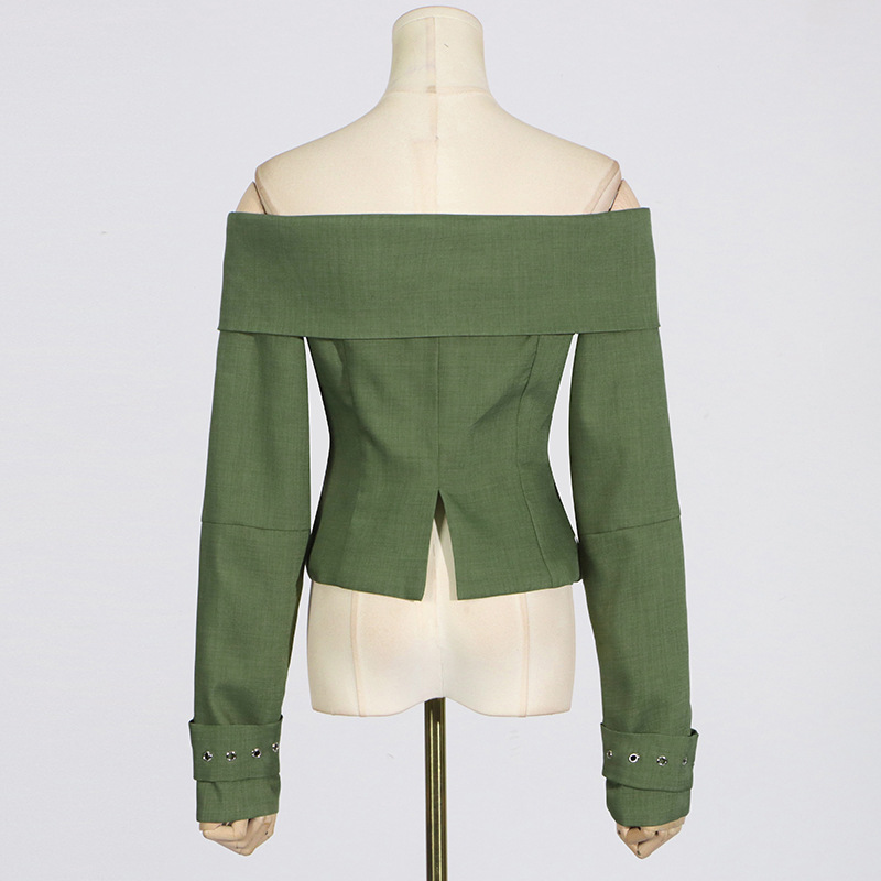 2024 summer new fashion temperament off-shoulder irregular zipper design sense slim long sleeve short women's jacket