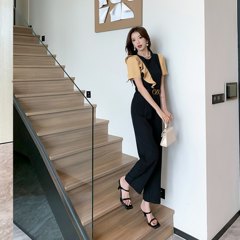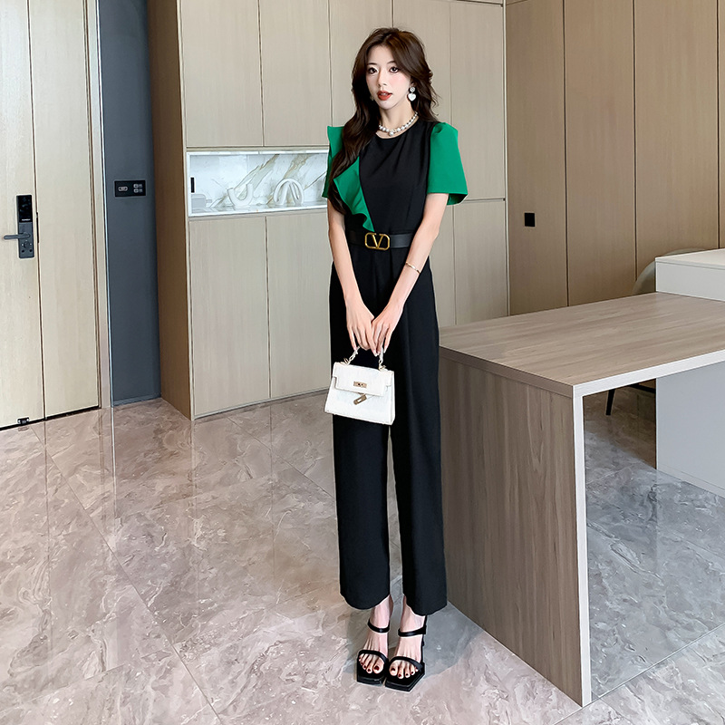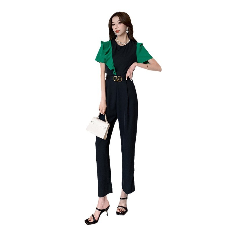 | nameOriginal | 2024 Summer New Fashionable Foreign-style Frying Street Contrast Color Slimming Ruffled Jumpsuit Trousers |