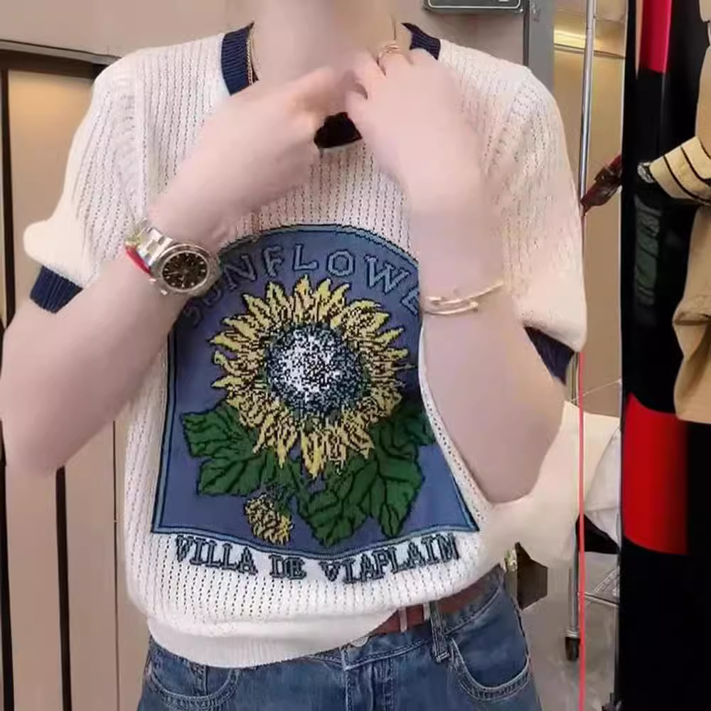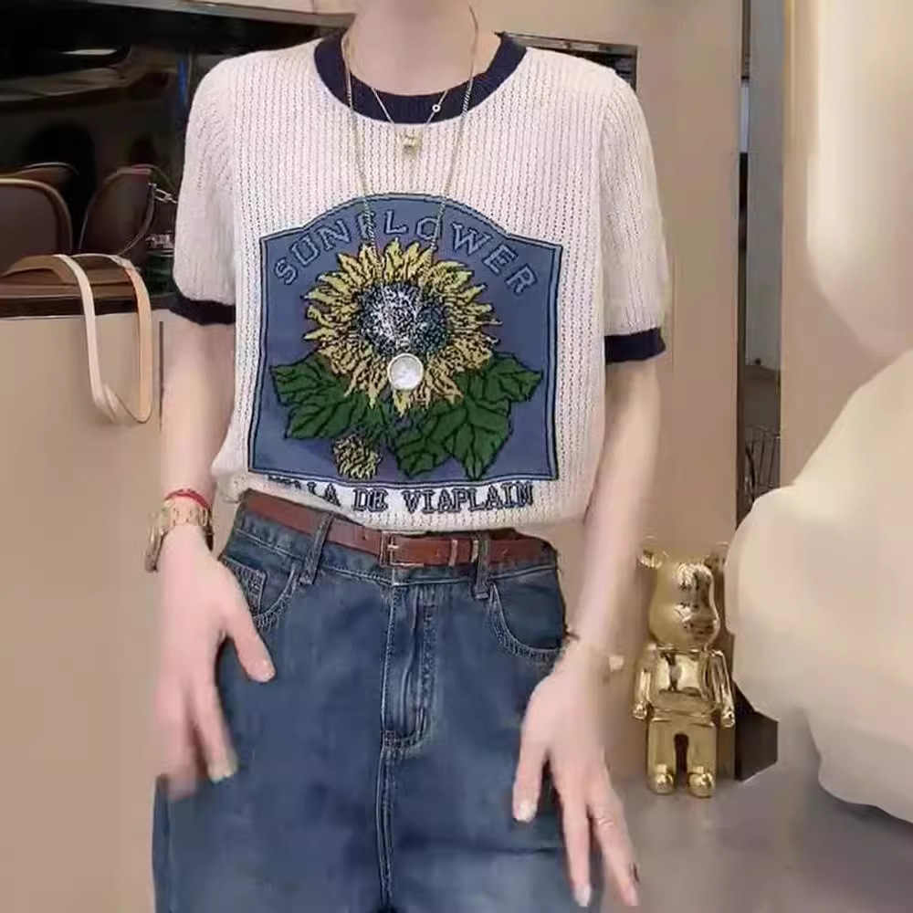 | nameOriginal | 2024 Summer New Fashionable Short-sleeved T-shirt Women's Slim-fit Slimming Round Neck Printed Pattern Casual All-match Top |