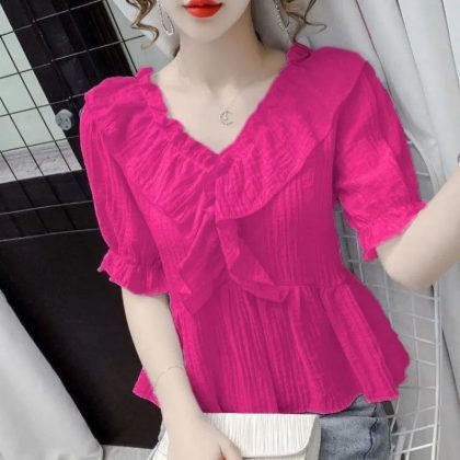 | nameOriginal | 2024 Summer New French Collar Ruffled Bubble Short Sleeve Shirt Women's All-match Fashionable Elegant Top for Women |