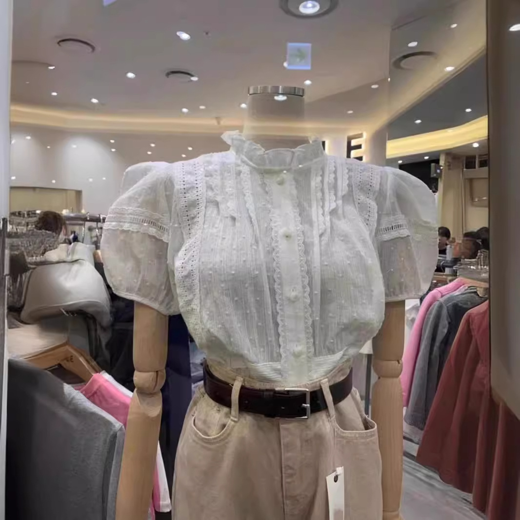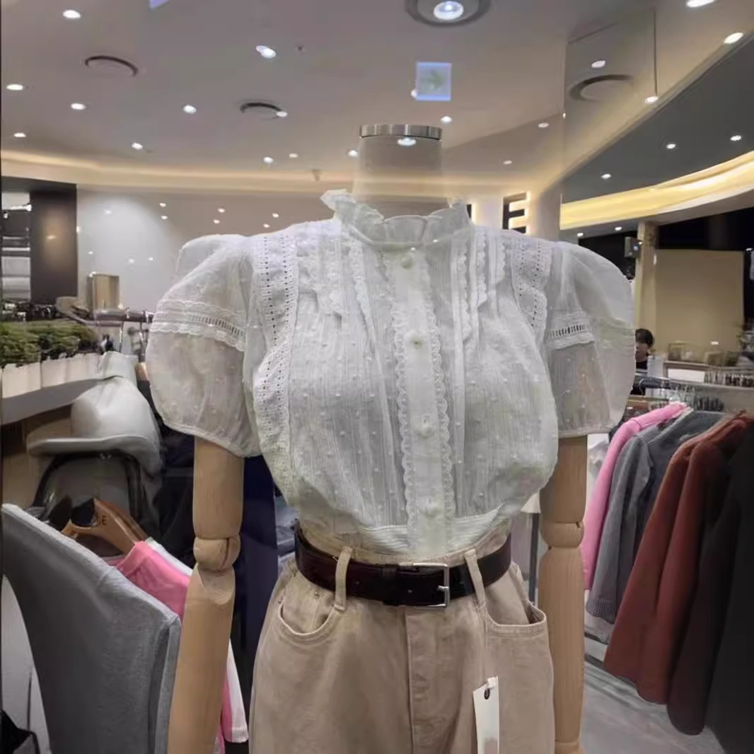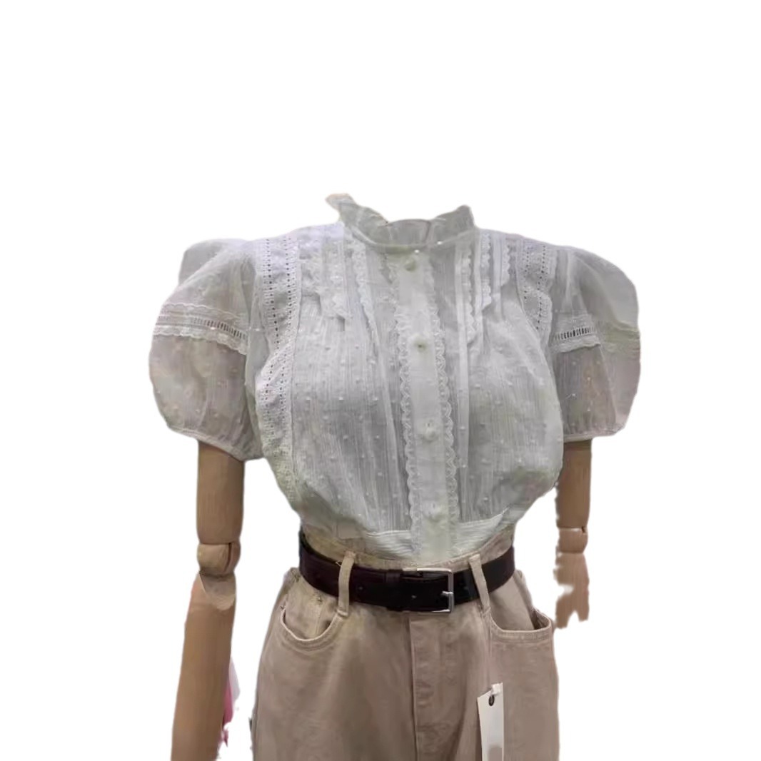 | nameOriginal | 2024 Summer New French Court Style White Lace Stitching Shirt Puff Sleeve Shirt Top for Women |