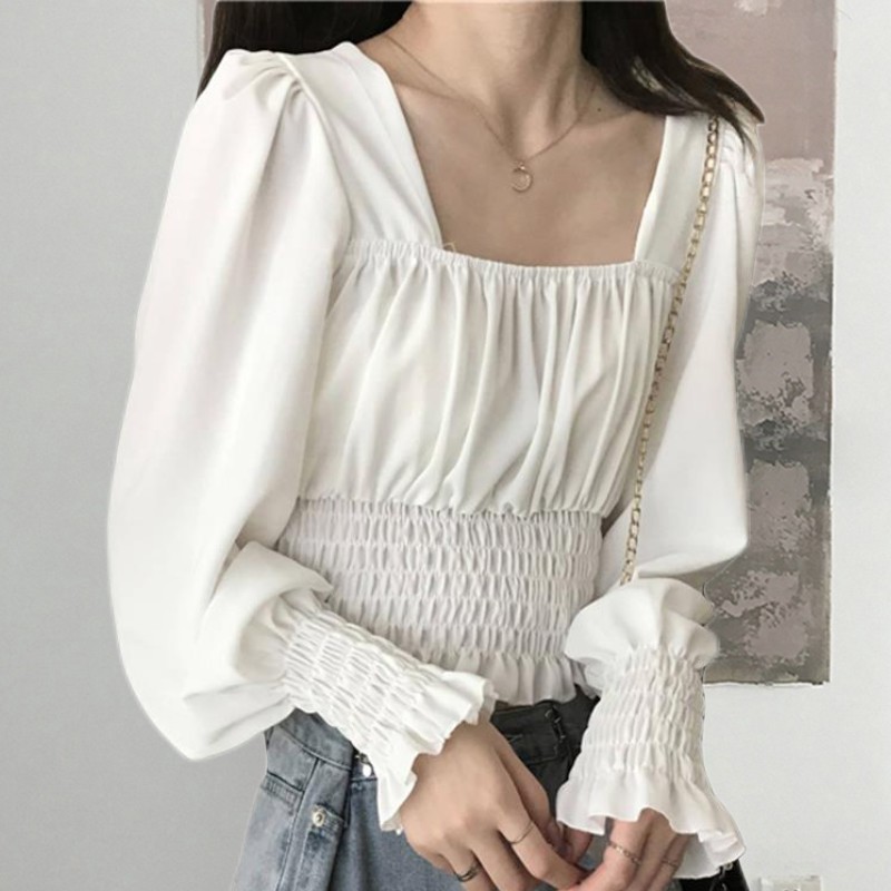 2024 Summer New French Long-sleeved Chiffon Shirt Women’s Spring and Autumn Design Sense Niche Tight Waist Slimming Short Top