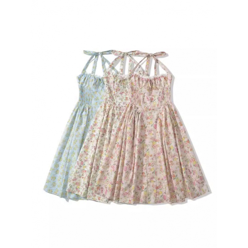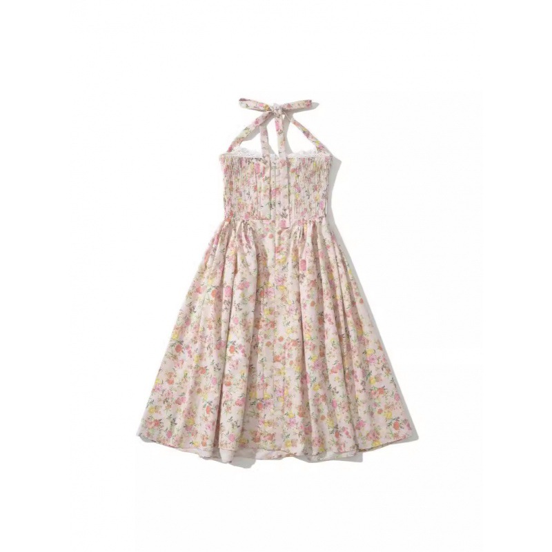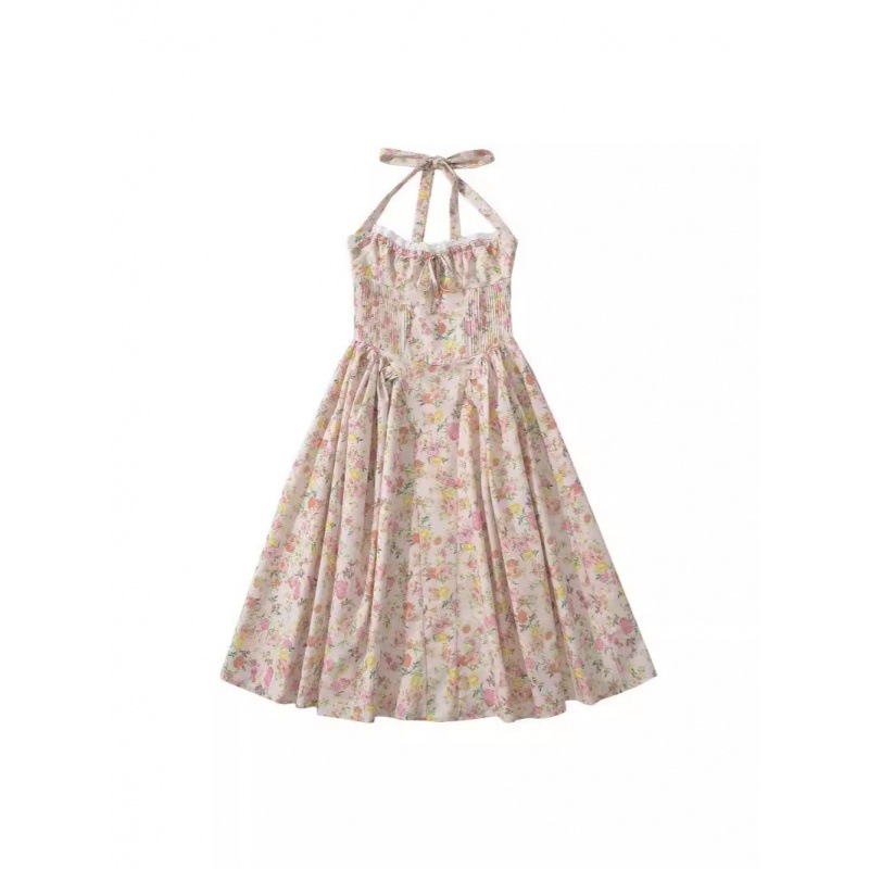 | nameOriginal | 2024 Summer New French Style Floral Neck dress Women's Pure Desire Elegant Tight Waist Slimming Vacation Long Dress |