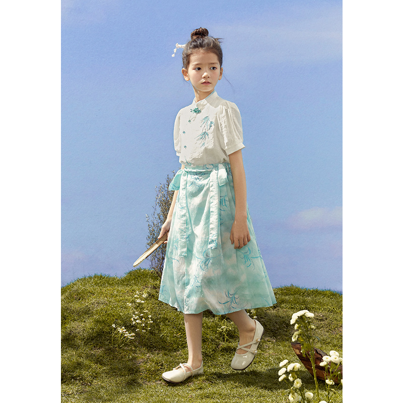 | nameOriginal | 2024 summer new girls new Chinese horse skirt big children's cool shirt girl suit a generation of hair |