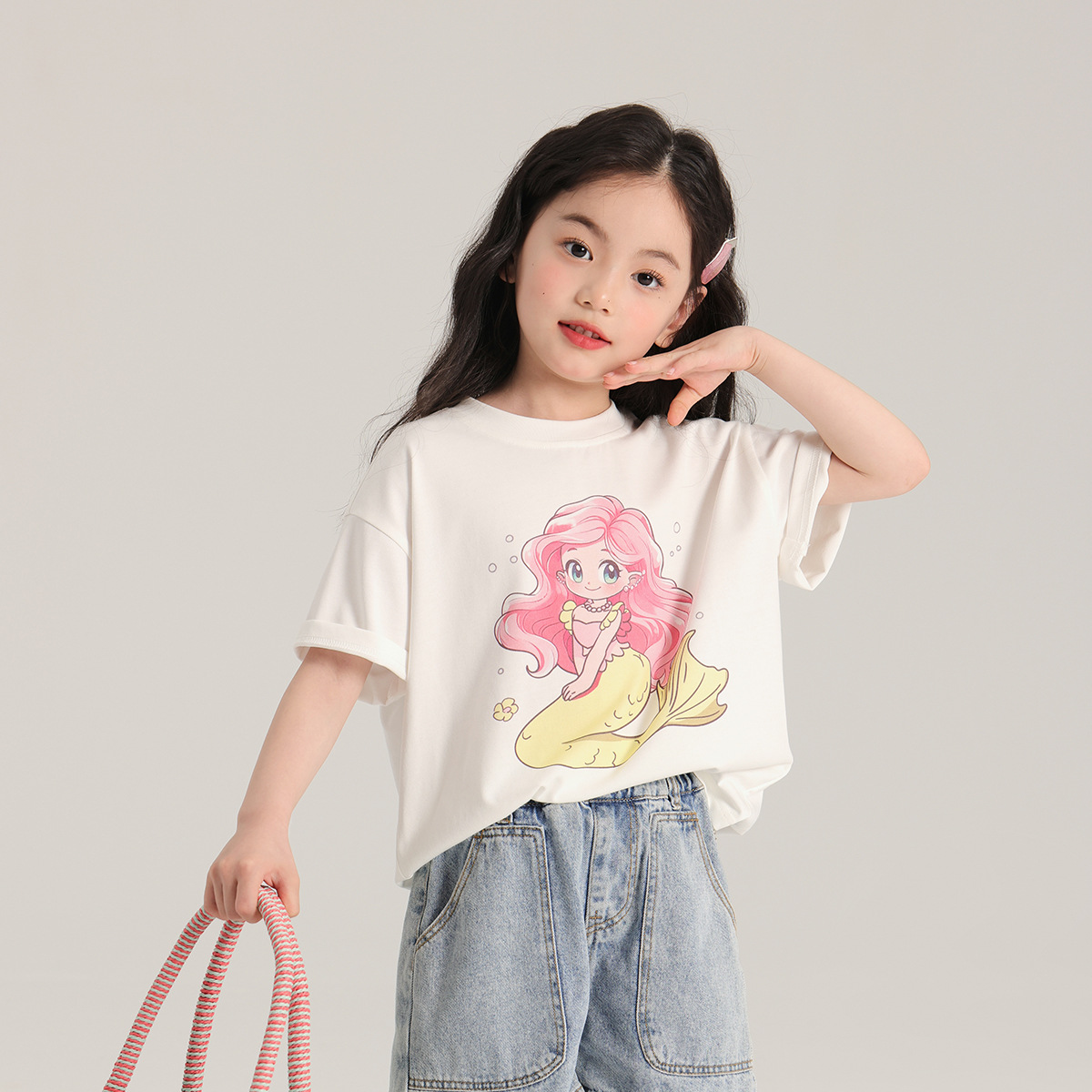 | nameOriginal | 2024 Summer New Girls' Short-sleeved T-shirt Joker Mermaid Printed Short-sleeved regular Girls' T-shirt |