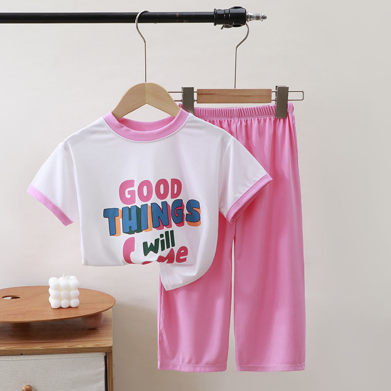 | nameOriginal | 2024 Summer New Girls' T-shirt Two-piece Ice Silk Wide-leg Pants Casual Fresh Suit Home Comfortable Breathable |