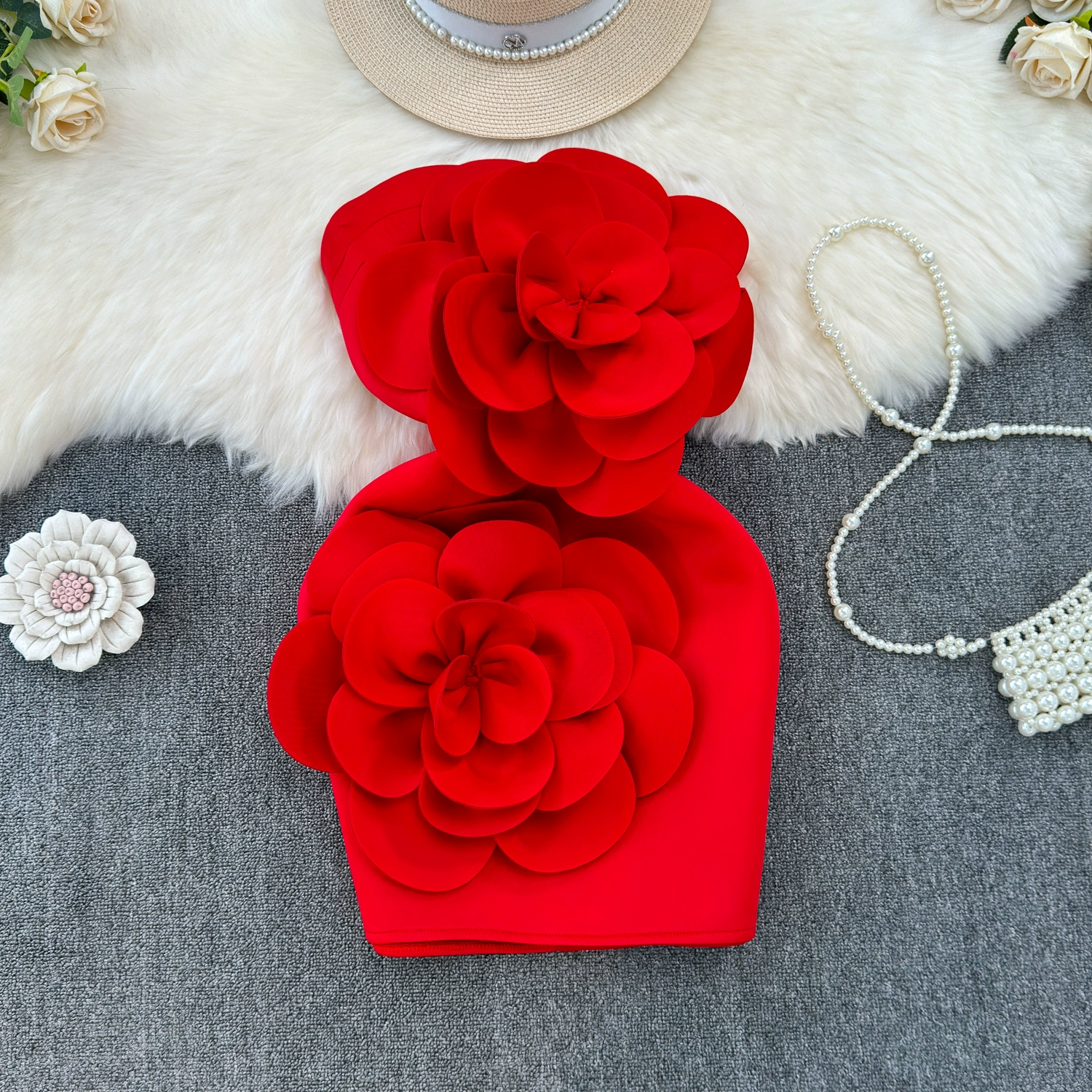 | nameOriginal | 2024 Summer New Goddess Style Red Exquisite Three-dimensional Large Flower Design Royal Sister Sexy Tubeless Dress |