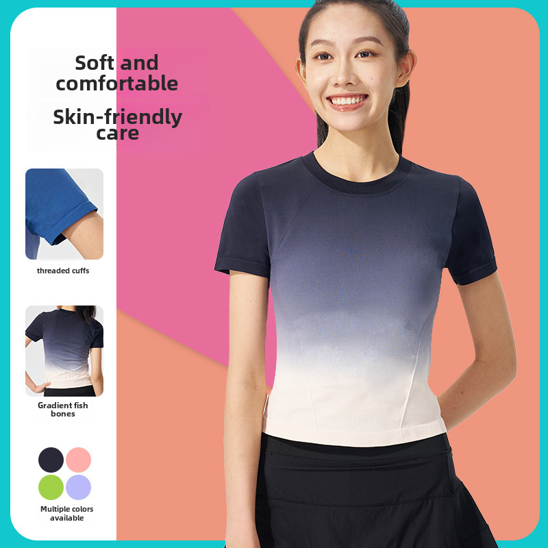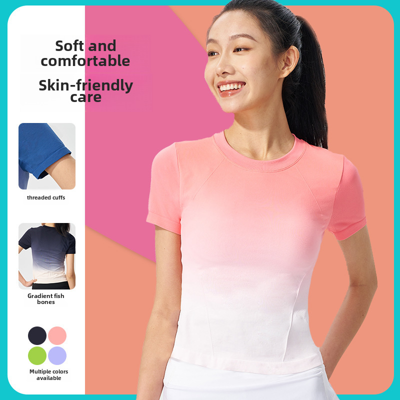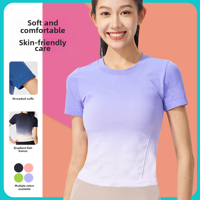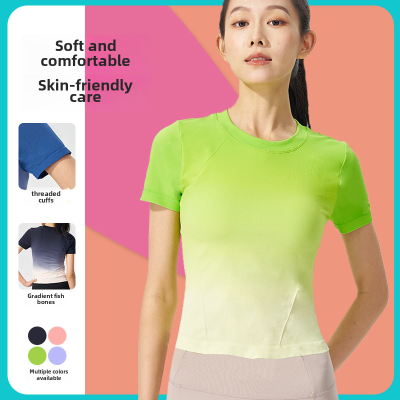 | nameOriginal | 2024 summer new gradient quick-drying running fitness short sleeve slim yoga T-shirt LULU sports top women |