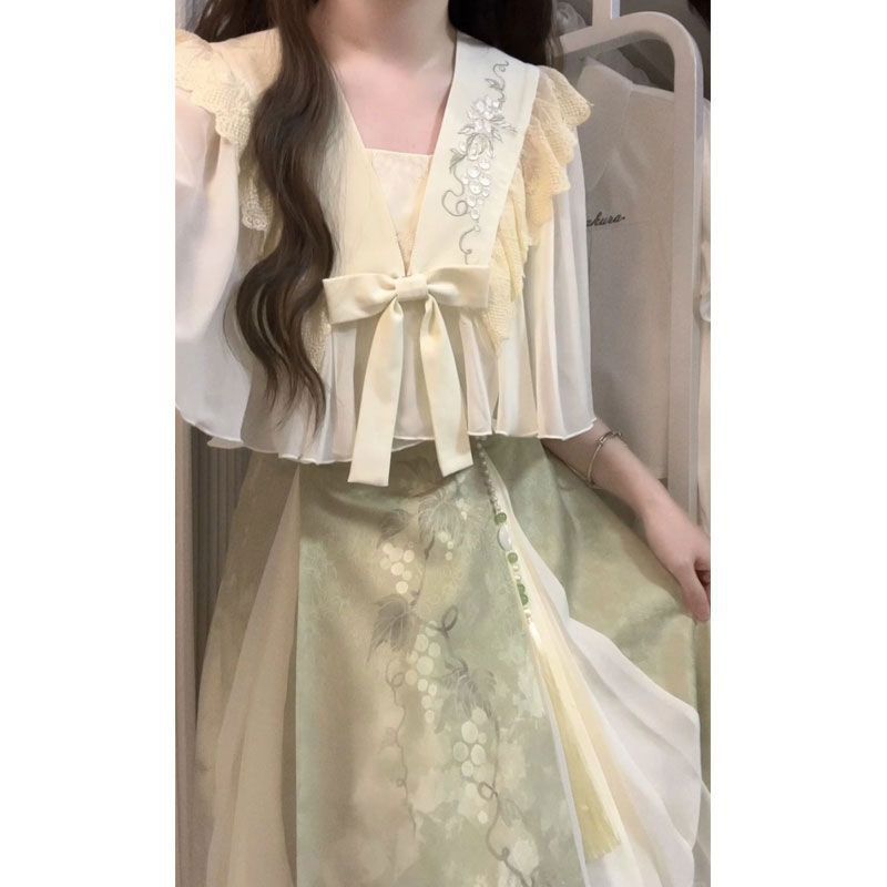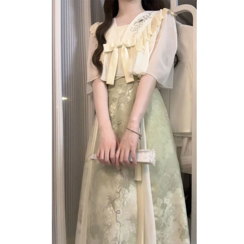 | nameOriginal | 2024 Summer New Hanfu Horse-faced Skirt Wearing Daily New Chinese Style National Style Han Element dress suit Women |