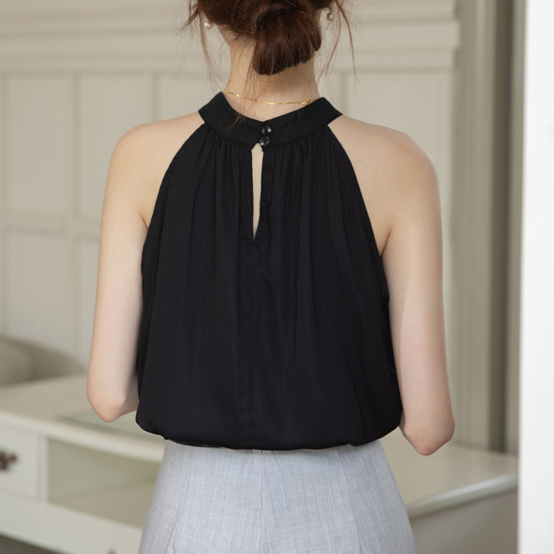 2024 Summer New Hanging Neck Sleeveless Vest Summer French Elegant Slim-fit Sexy Gentle Short Shoulder Strap