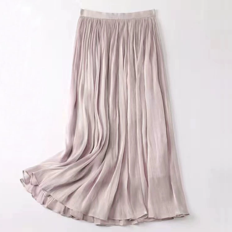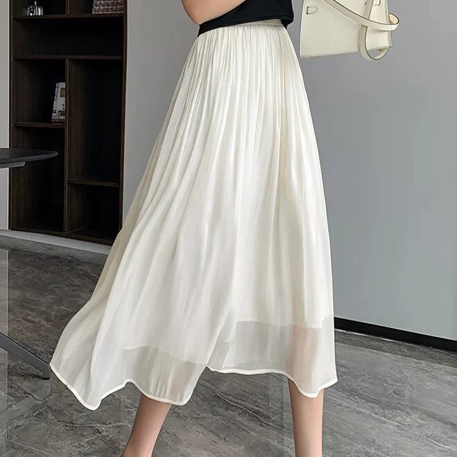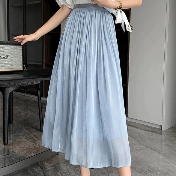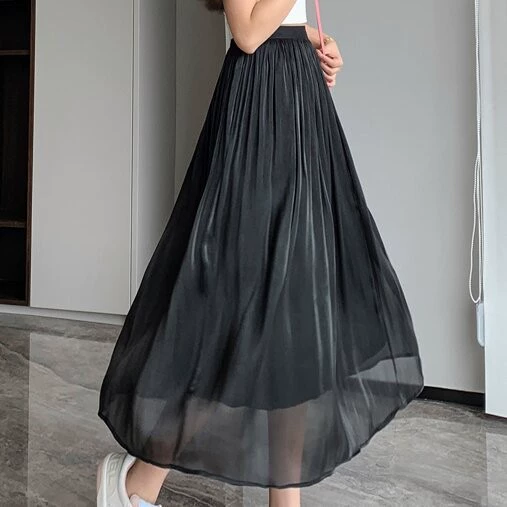 2024 summer new high-waisted slim flowing gauze skirt women's mid-length a-line skirt casual versatile pleated