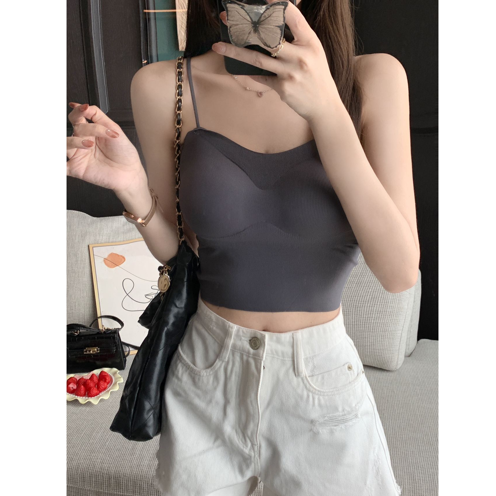 | nameOriginal | 2024 Summer New Ice Silk Simple Base Shirt Underwear Seamless with Chest Pad Slim-fit All-match Camisole Top |