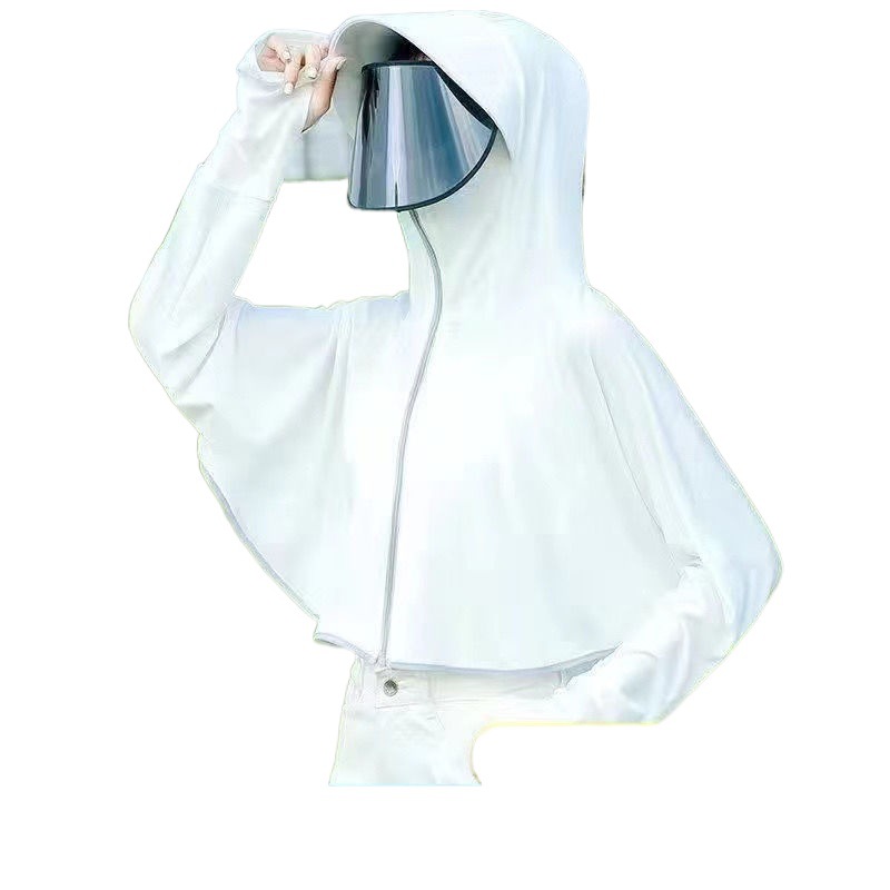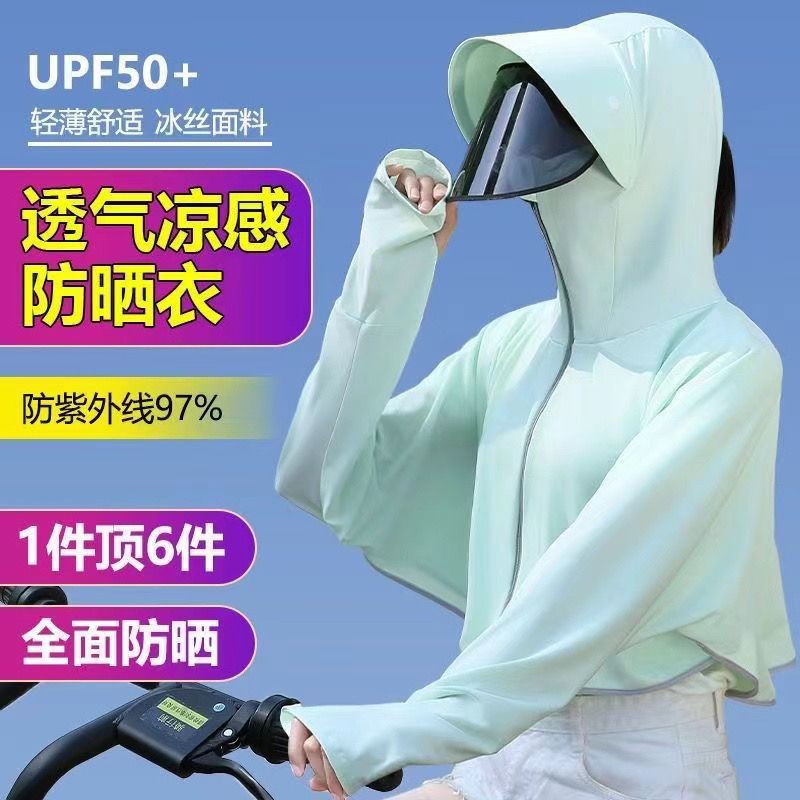 2024 Summer New Ice Silk Sunscreen Clothes Women's Outer Wearing Short UV-resistant Loose Half-body Jacket Insulated Cycling