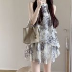 | nameOriginal | 2024 Summer New Ink Print Neck Sleeveless Top Skirt Two-Piece Celebrity Style suit Fashion |