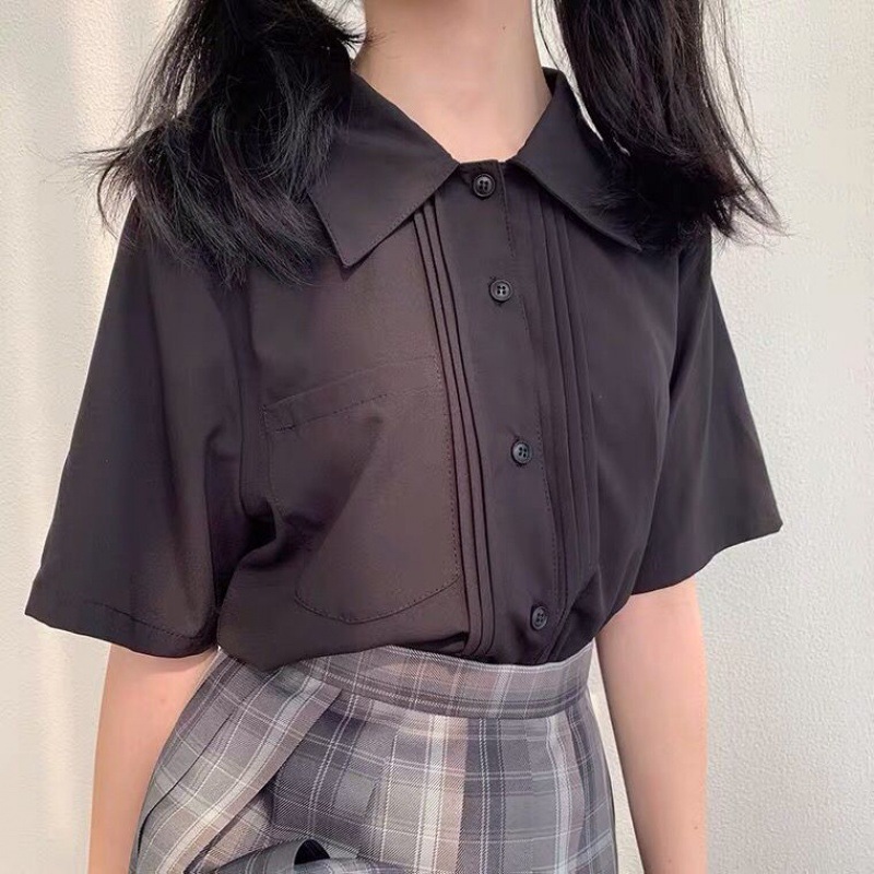 | nameOriginal | 2024 summer new Japanese girl high school college organ pleated short sleeve pocket uniform chiffon straight shirt |