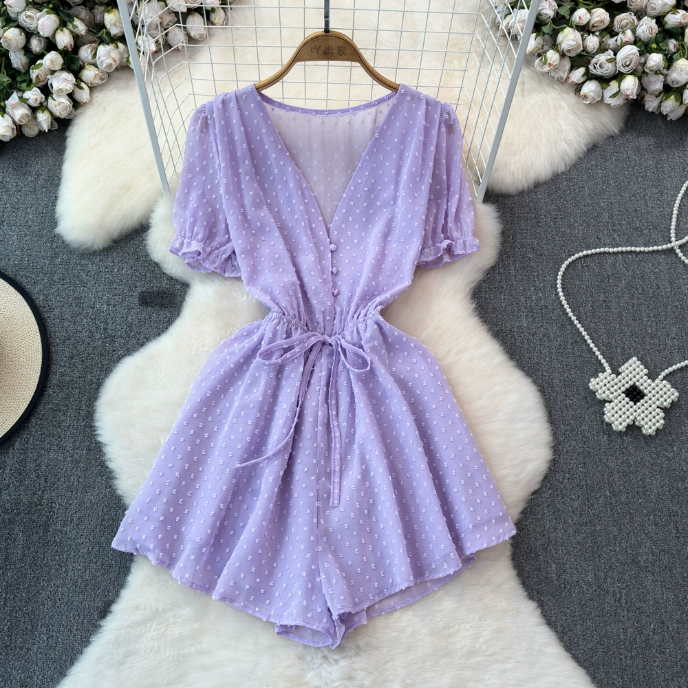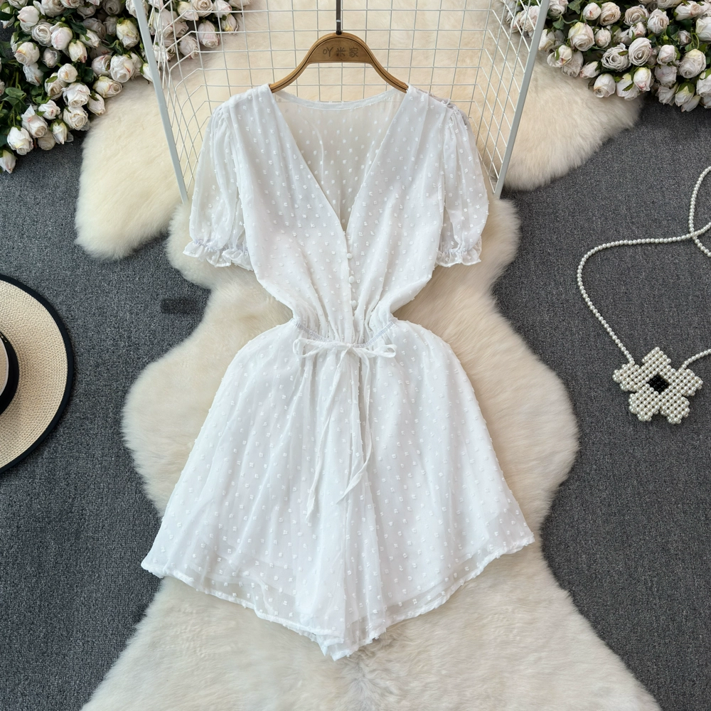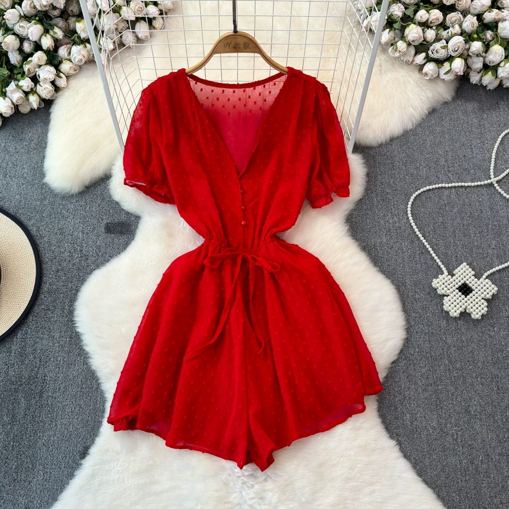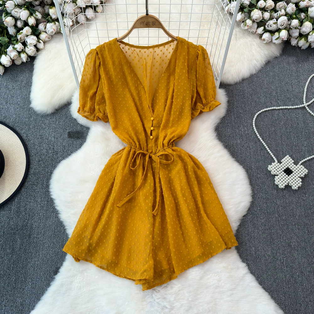 | nameOriginal | 2024 Summer New Jumpsuit Retro Sweet Versatile V-neck Puff Sleeve Short Sleeve Waist Wide Leg Pants Jumpsuit |