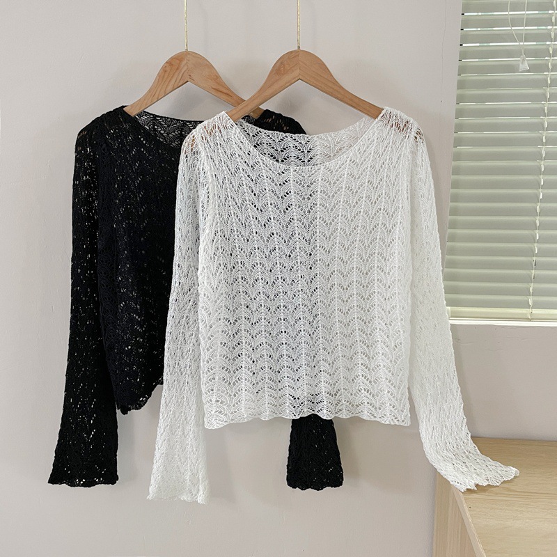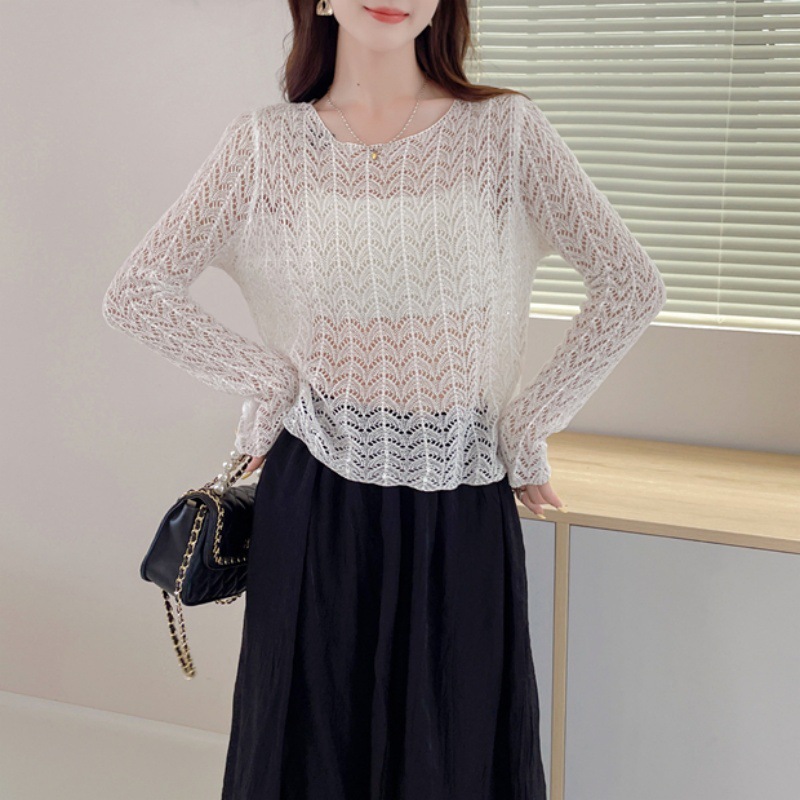 | nameOriginal | 2024 Summer New Knitted Design Sense Korean-style Hollow All-match Thin Long-sleeved Pullover Sunscreen Top for Women |