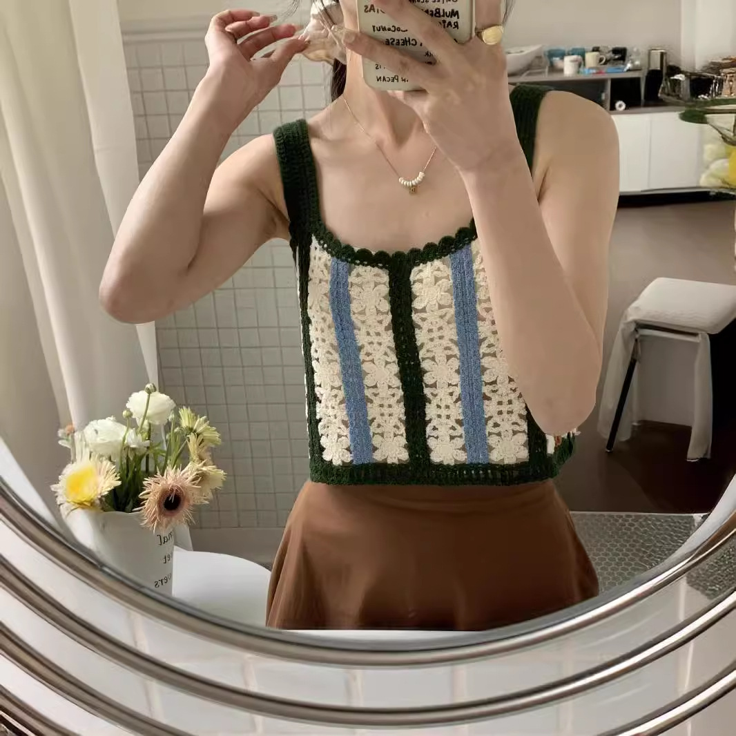 | nameOriginal | 2024 Summer New Knitted Hollow Embroidery Stitching Contrast Color Fashion Sling Small Vest for Women |