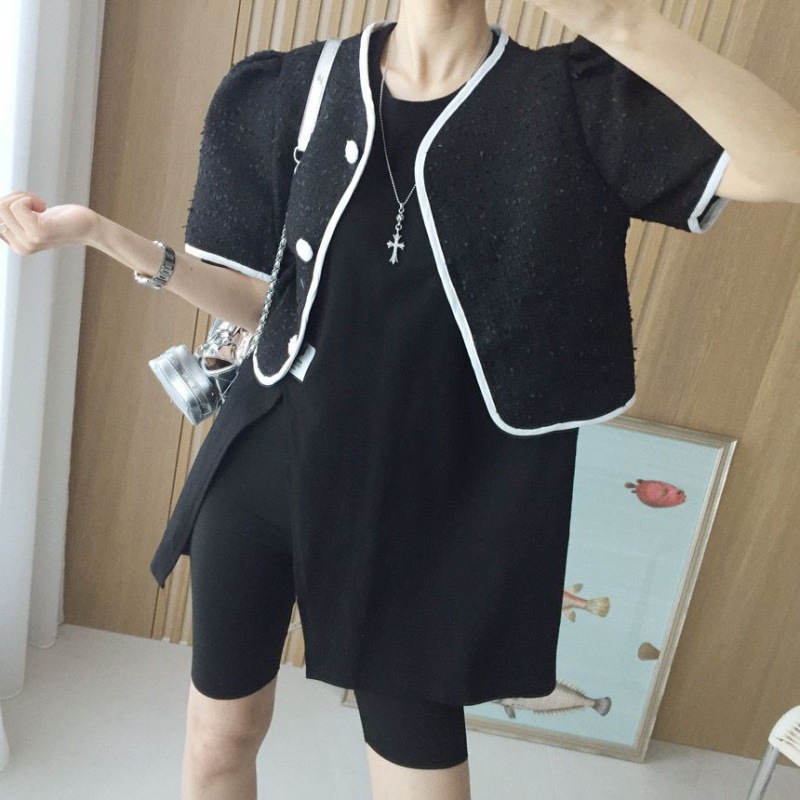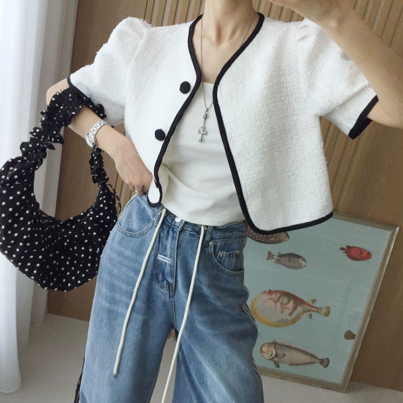| nameOriginal | 2024 Summer New Korean Chic Simple Elegant Short Single-breasted Small Chanel Style Short-sleeved Cardigan Jacket 2 Colors |
