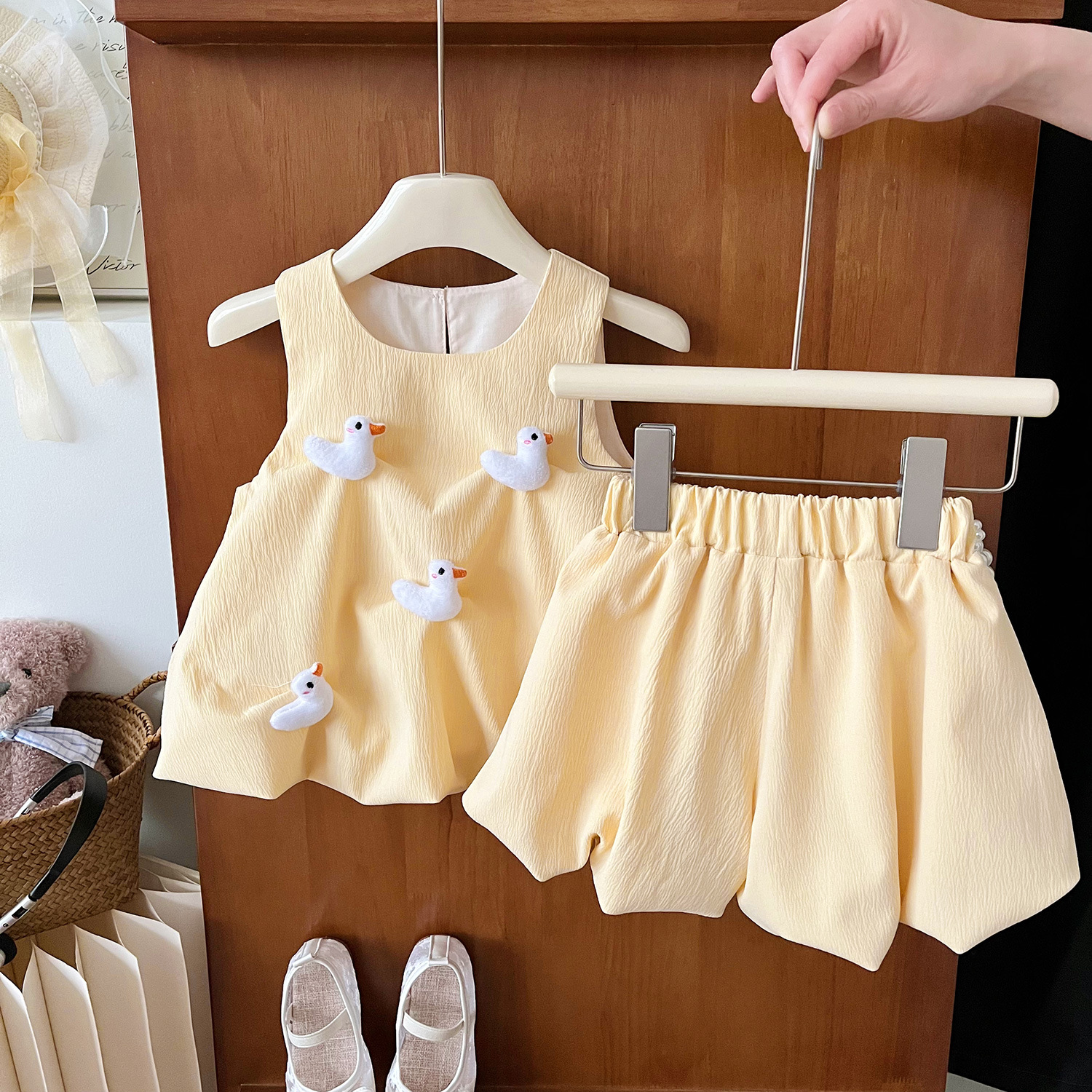 | nameOriginal | 2024 summer new Korean girls duckling flower bud skirt duckling suit baby tide 24180-24181 |