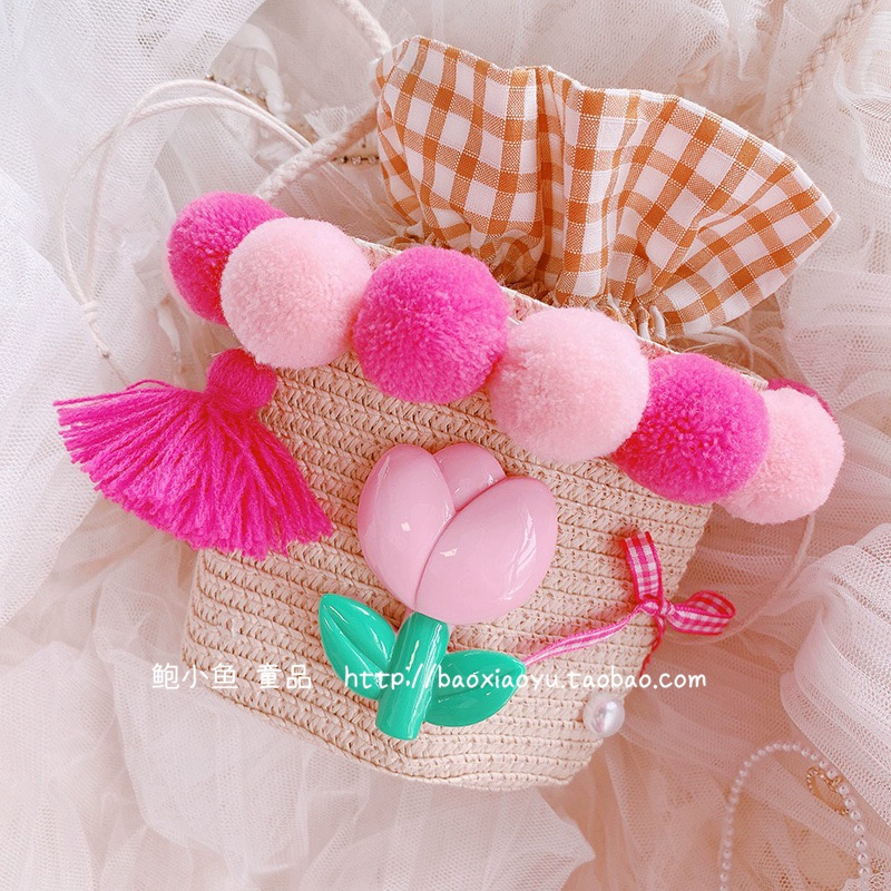| nameOriginal | 2024 summer new Korean ins parent-child travel handmade three-dimensional ball woven straw hat portable basket bag |