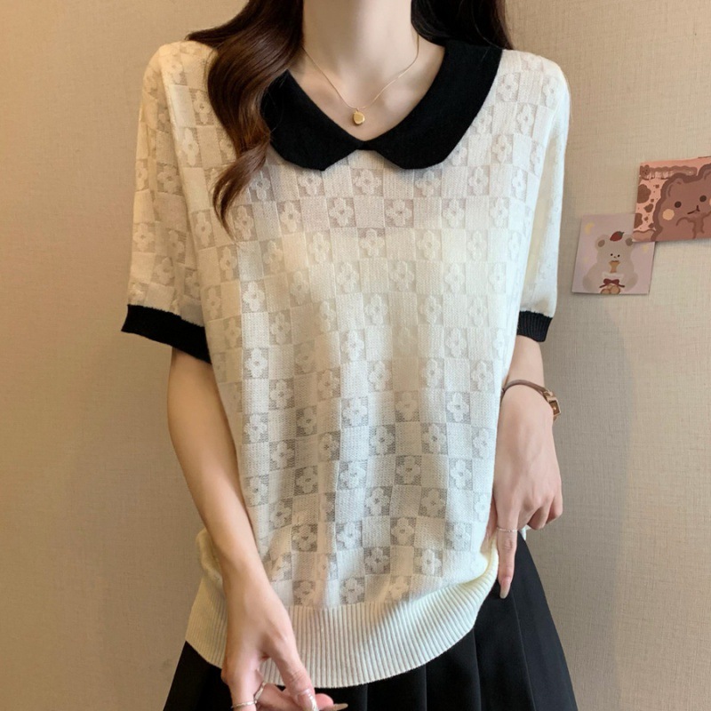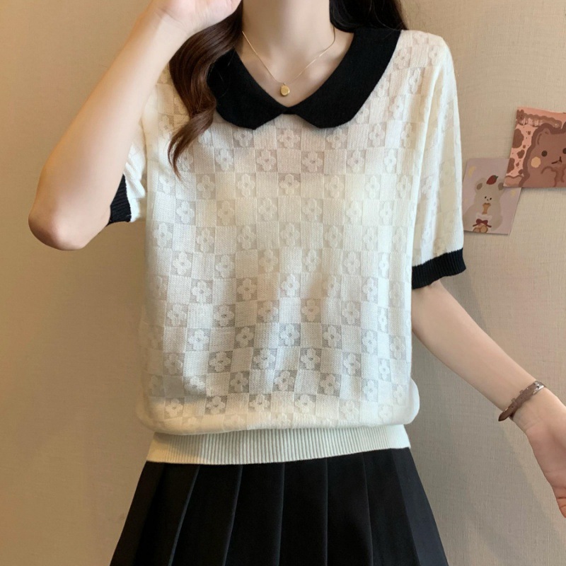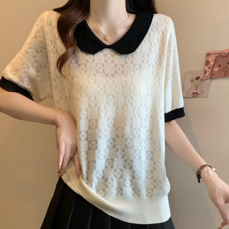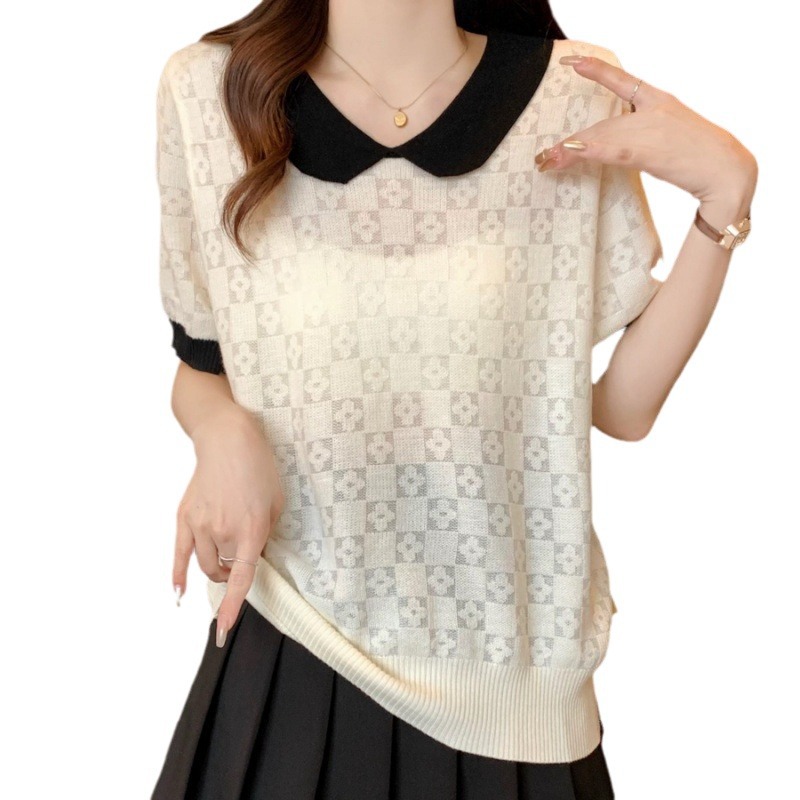 | nameOriginal | 2024 Summer New Korean Style All-match Loose Commuting Fashion POLO Collar Knitted Fir Thin Ice Silk T-shirt Trendy |