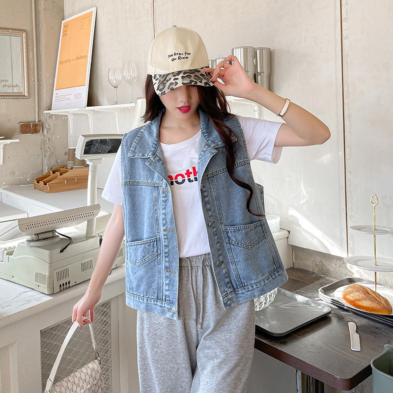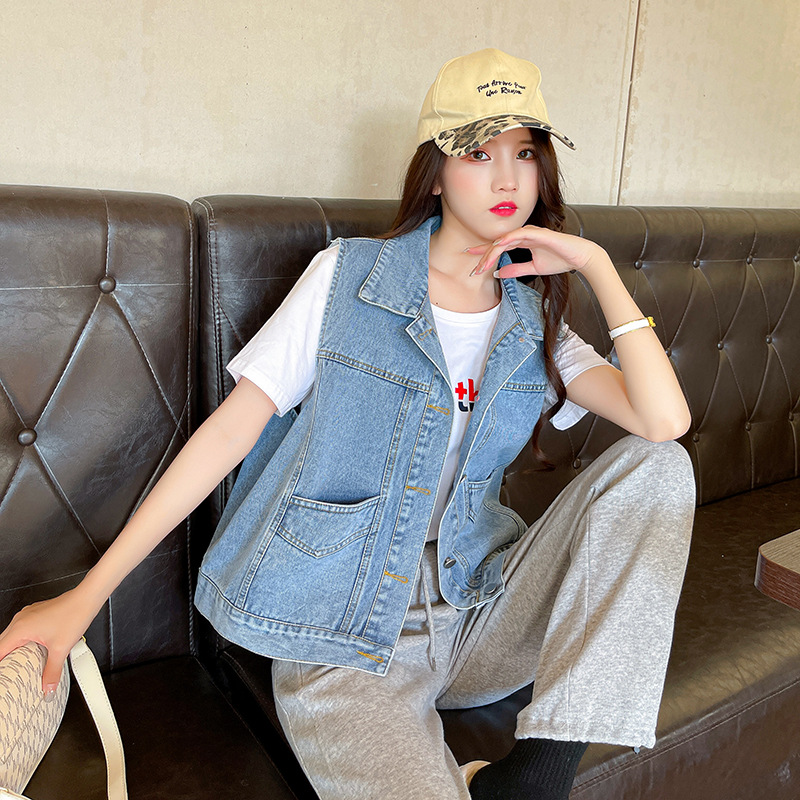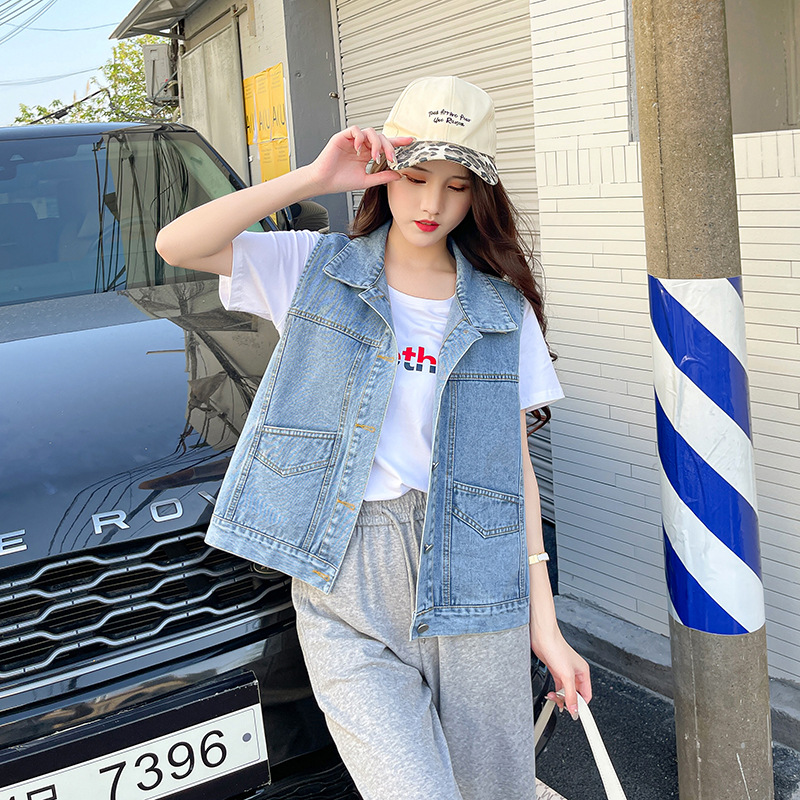 | nameOriginal | 2024 Summer New Korean Style BF Loose Simple Commuting All-match Casual Large Pocket Soft Denim Vest Women's Top |