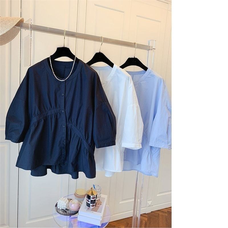 | nameOriginal | 2024 Summer New Korean Style Design Sense Niche Loose Asymmetric Pleated Stitching Doll Shirt Women's Trendy |