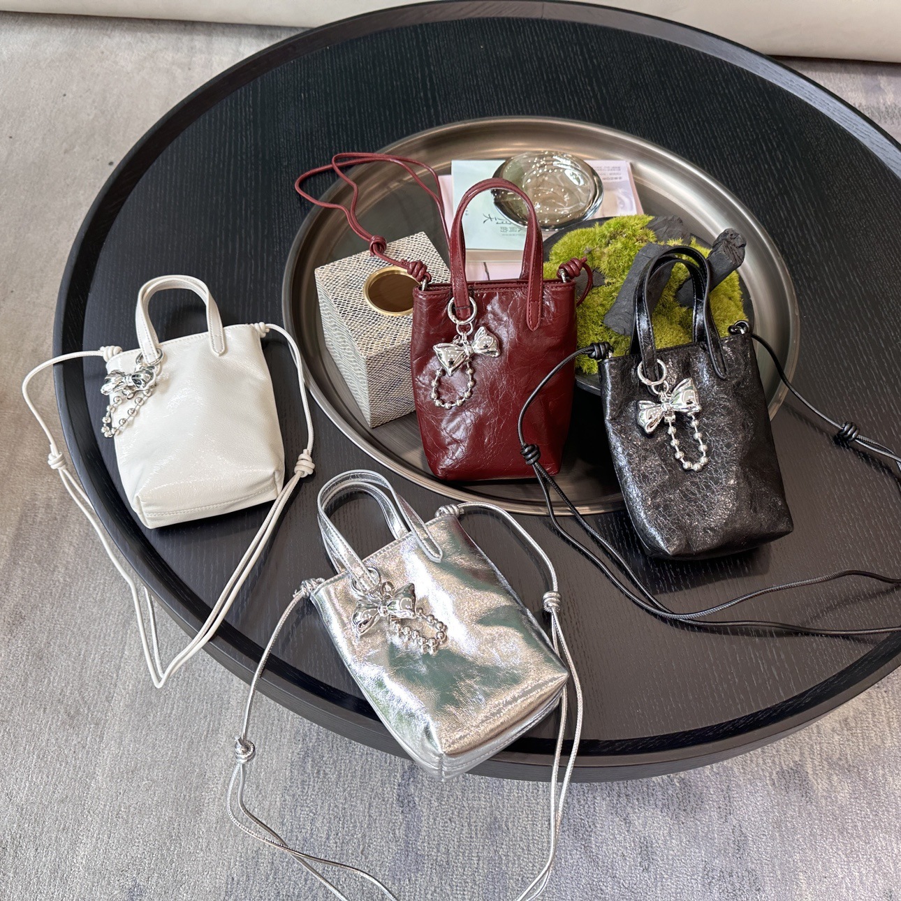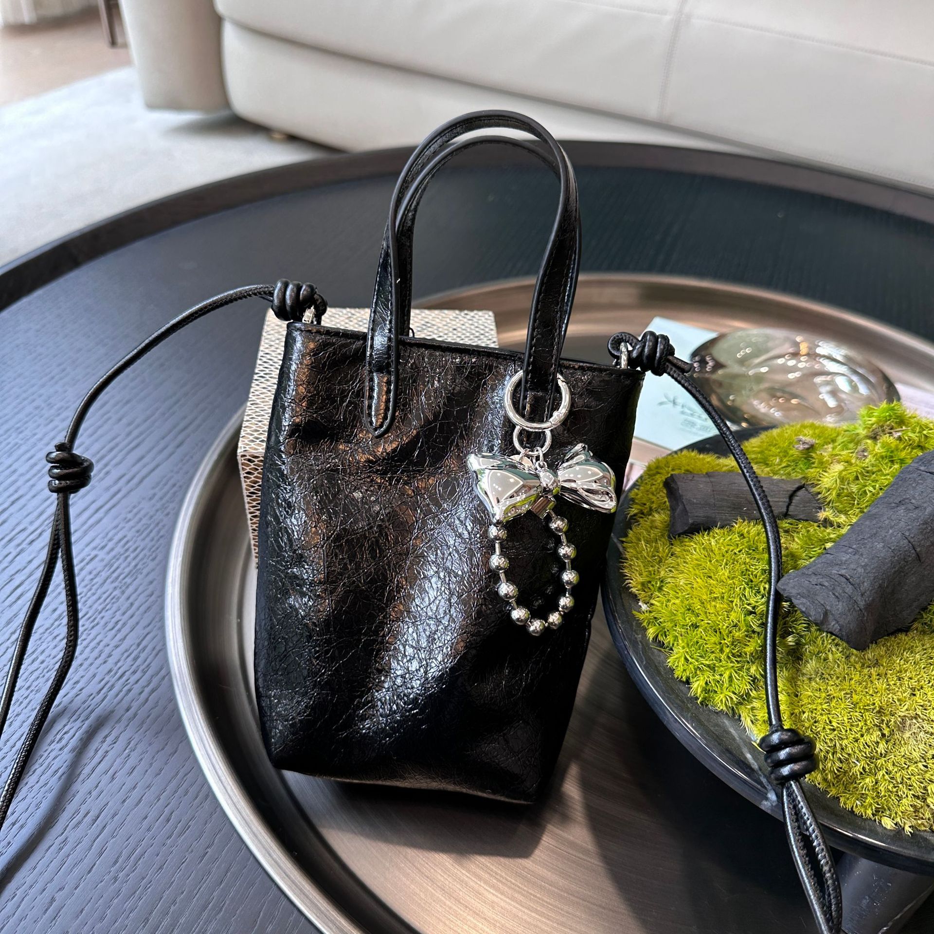 2024 Summer New Korean Style Fashionable Lightweight Mini Oil Wax Leather Simple Style Portable Shoulder Crossbody Phone Bag