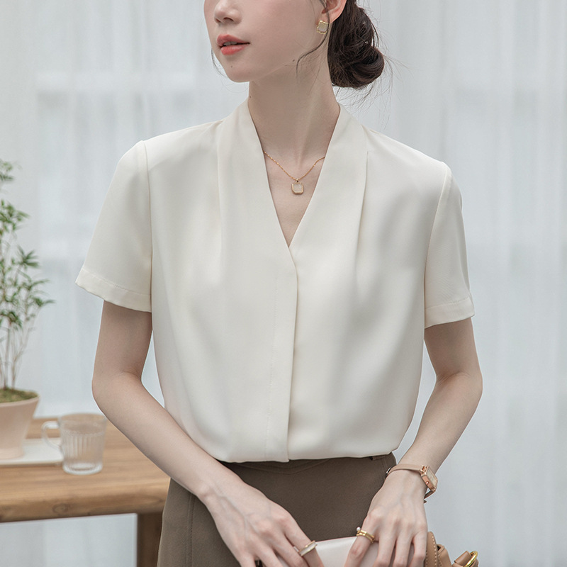| nameOriginal | 2024 Summer New Light Mature V-Neck French Short-Sleeved Shirt Women's Professional Commuting White Shirt Top for Women |
