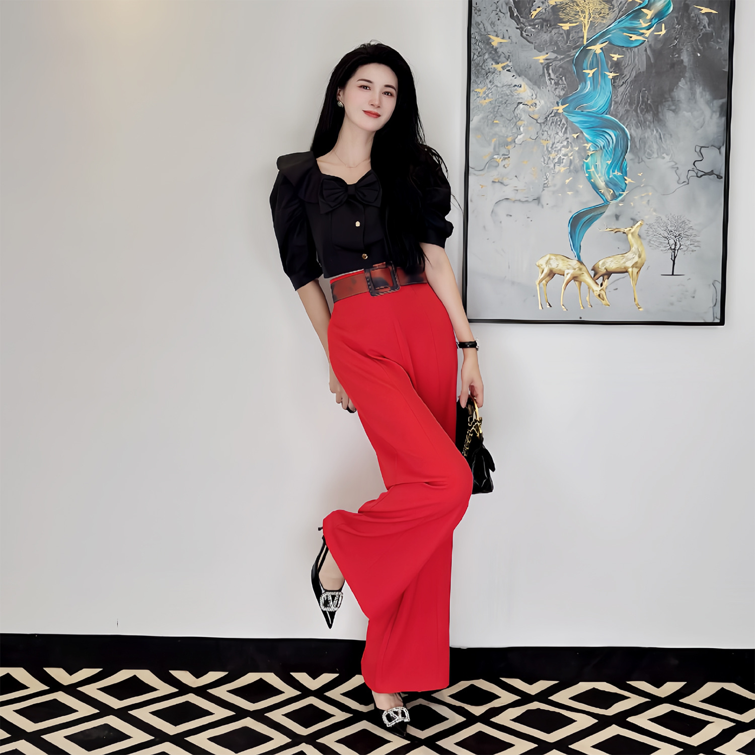 | nameOriginal | 2024 Summer New Liu Yifei Same Style Black Short Bow Puff Sleeve Top Women's Wide Leg Pants |