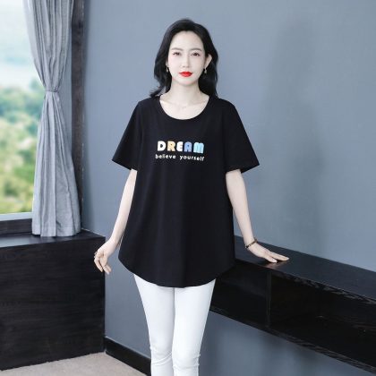 | nameOriginal | 2024 Summer New Loose Casual All-match Base T-shirt Top Printed Western-style Middle-aged chubby girl Women's Clothing |