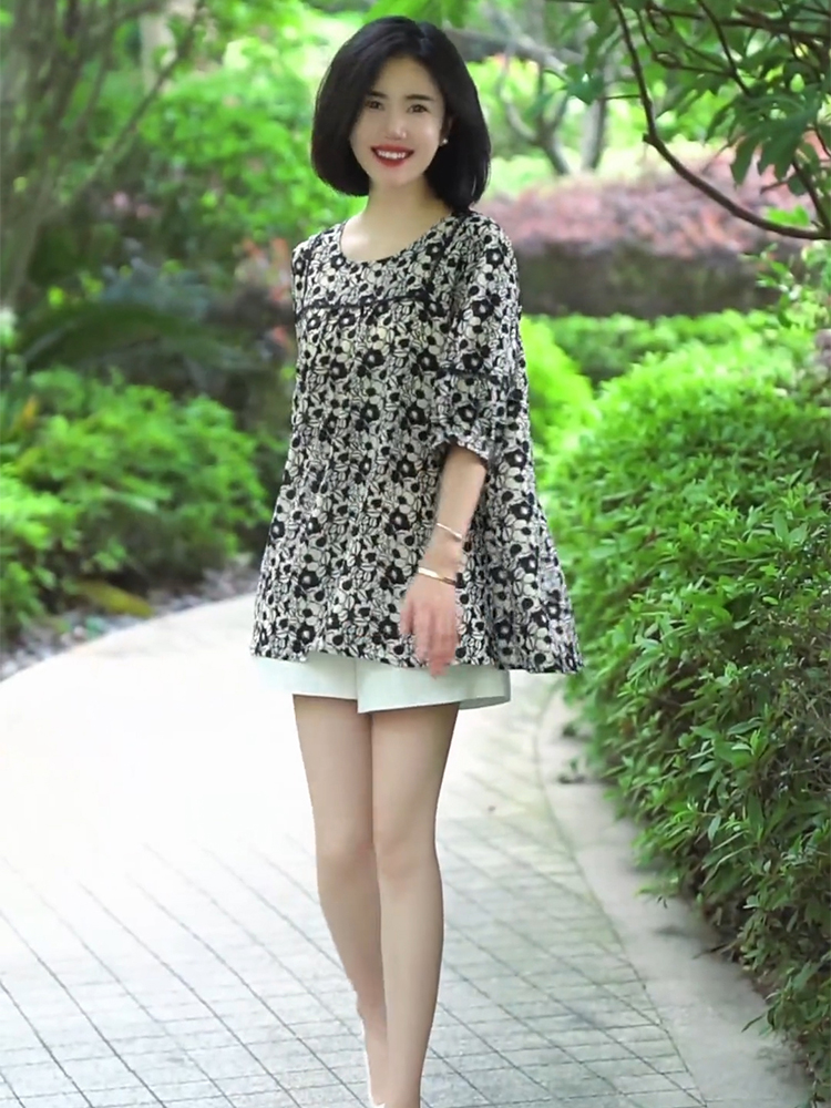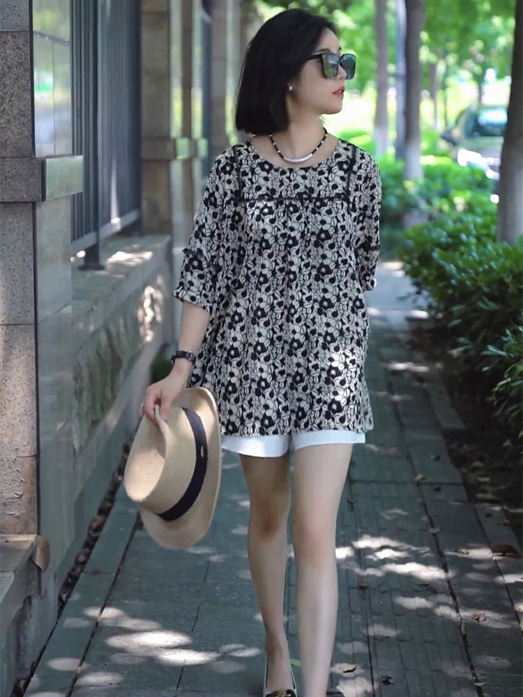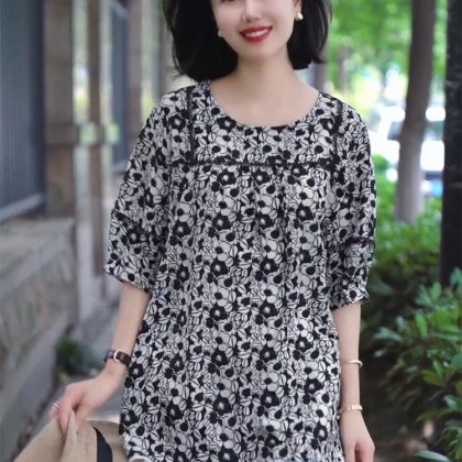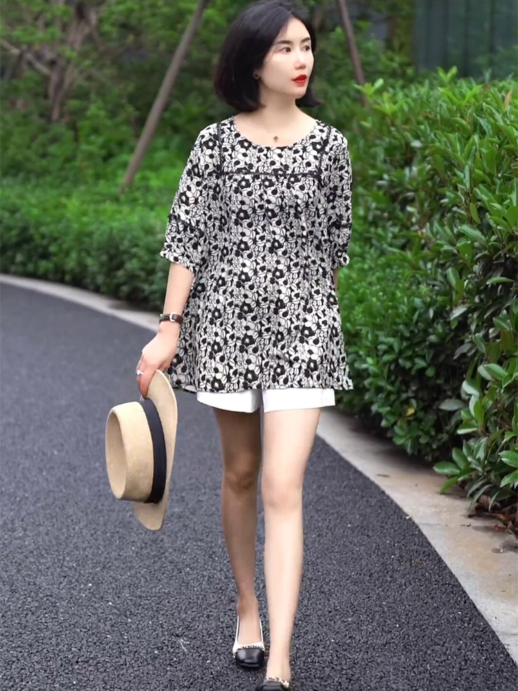 nameOriginal | 2024 Summer New Loosen Black and White Printed Lightweight All-match Shirt Half-sleeve Half-sleeve Chiffon Top for Women |
