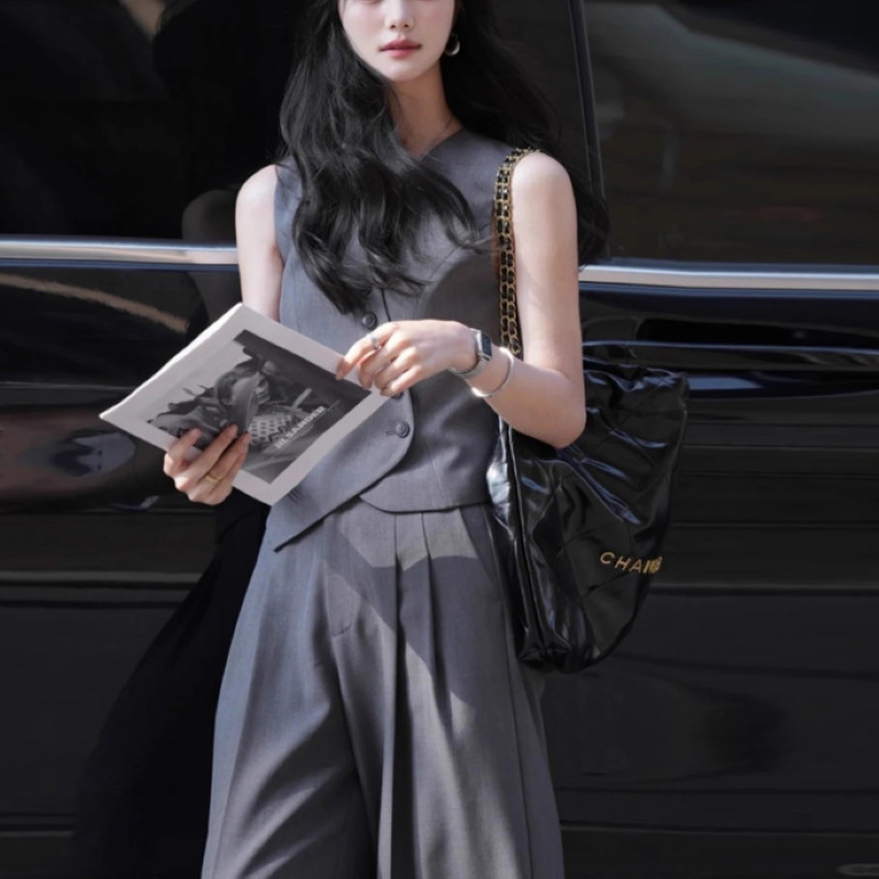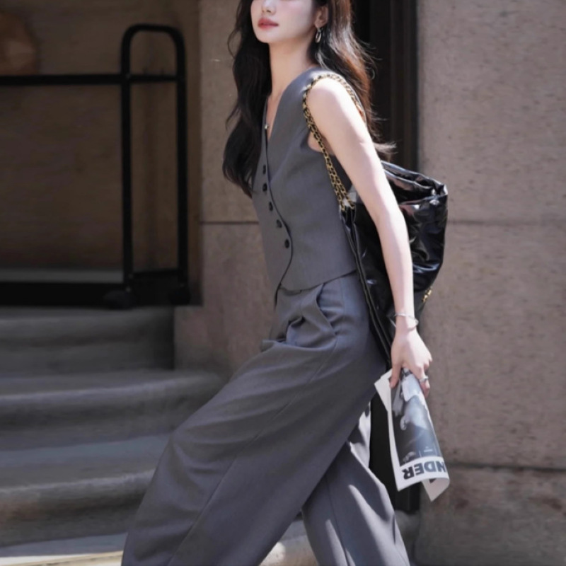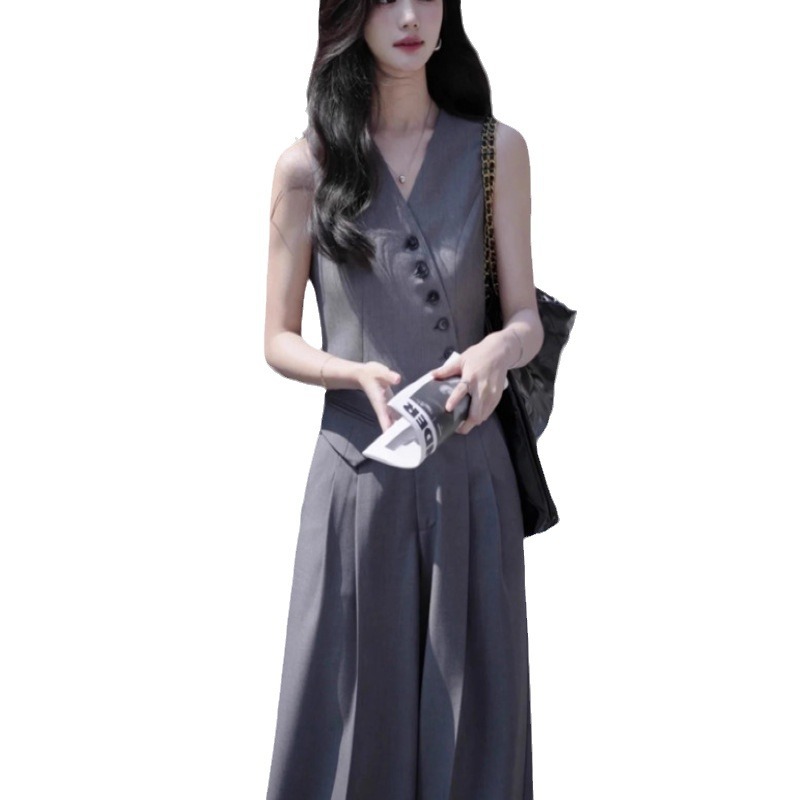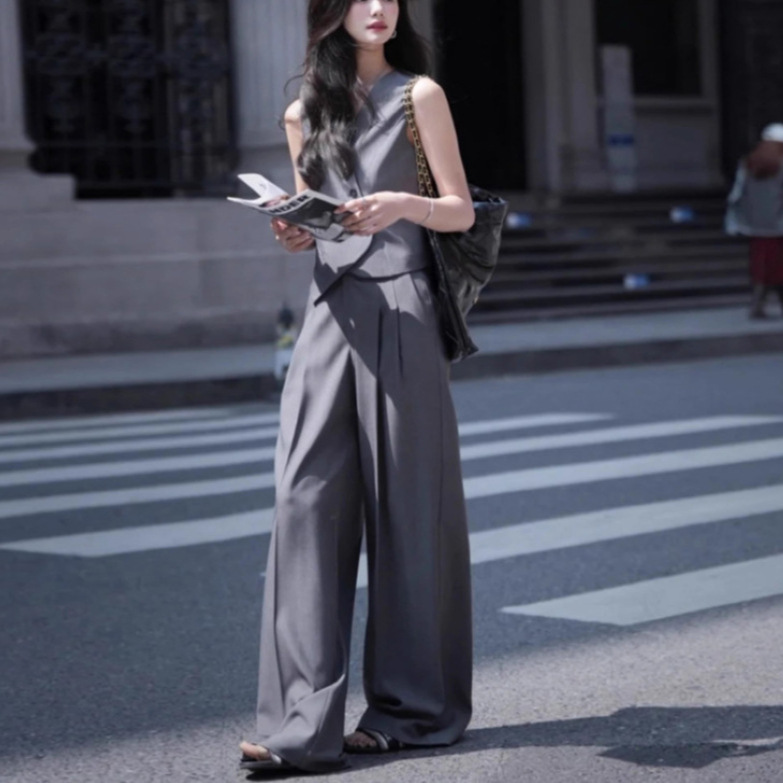 | nameOriginal | 2024 summer new model oblique placket small suit waistcoat high waist wide leg suit pants women's fashion two-piece suit |